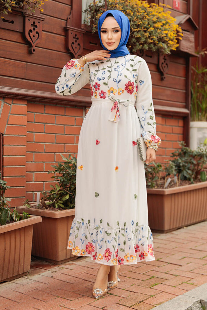 فستان حجاب أبيض منقوش بالزهور 23232b