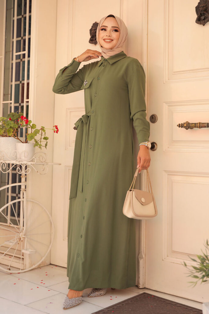 فستان سهرة حجاب – فستان سهرة حجاب أخضر مطرز 52056cy
