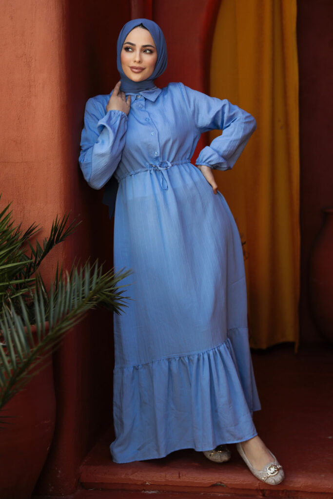 نيفا ستايل – فستان حجاب أحمر كلاريت بطبقة من الطيات 5883br