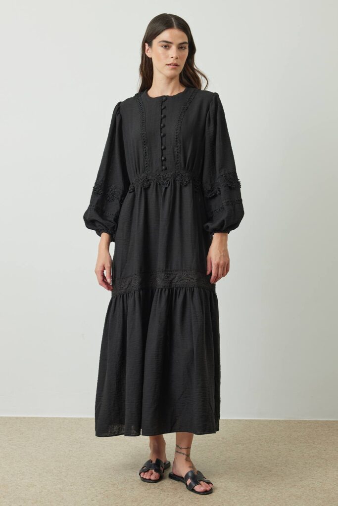 مميزات القماش: مصنوع من نسيج قطن 80% بوليستر خصائص المنتج: رقبة دائرية، وأكمام طويلة، وأكمام مطوية، وياقة مربوطة، وأساور أكمام، وأزرار في منتصف الجزء الأمامي، وبنطلون بخصر مرن وأرجل واسعة.
