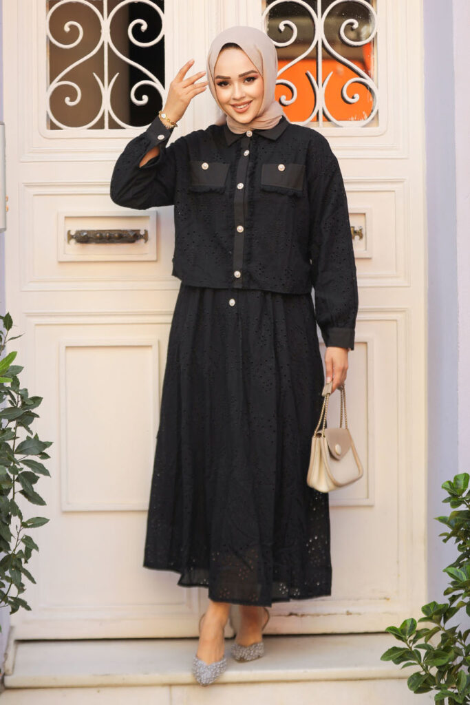 بدلة مزدوجة تنورة الحجاب السوداء 14171s