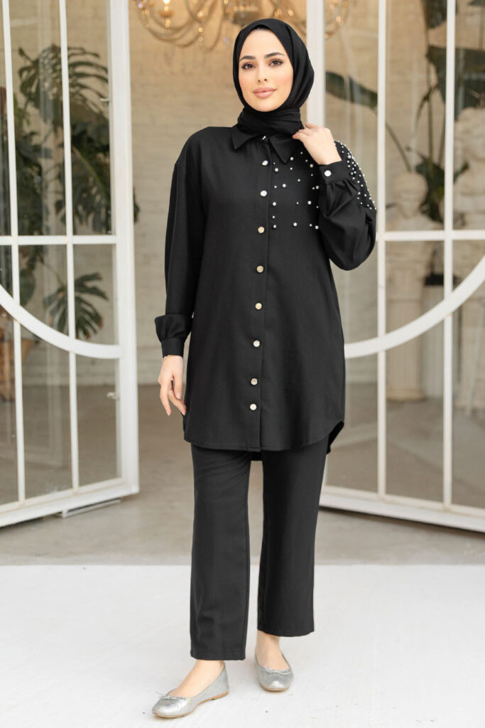 بدلة مزدوجة بحجاب أسود بتفاصيل لؤلؤ 12461s