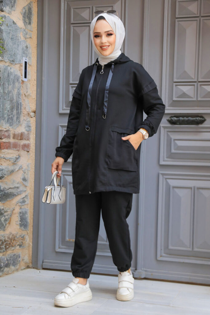 بدلة مزدوجة بالحجاب الأسود بغطاء للرأس 12312s