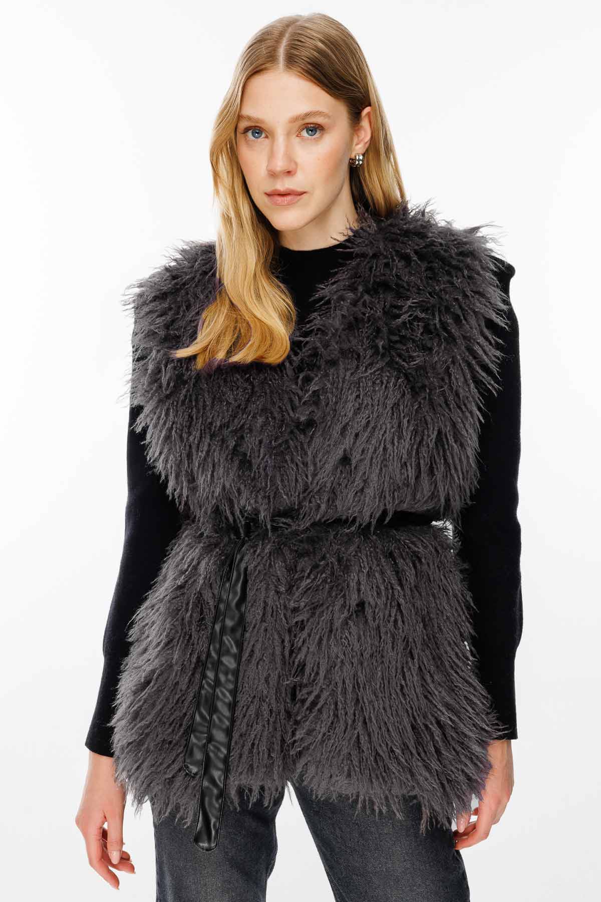 تتميز سترة Selection Fluffy Feather بملمس ناعم، وحزام جلدي، وسترة منفوشة مبطنة. 100% تخلي عن التنظيف الجاف فقط. لا تقم بكي المنتج أبدًا.
