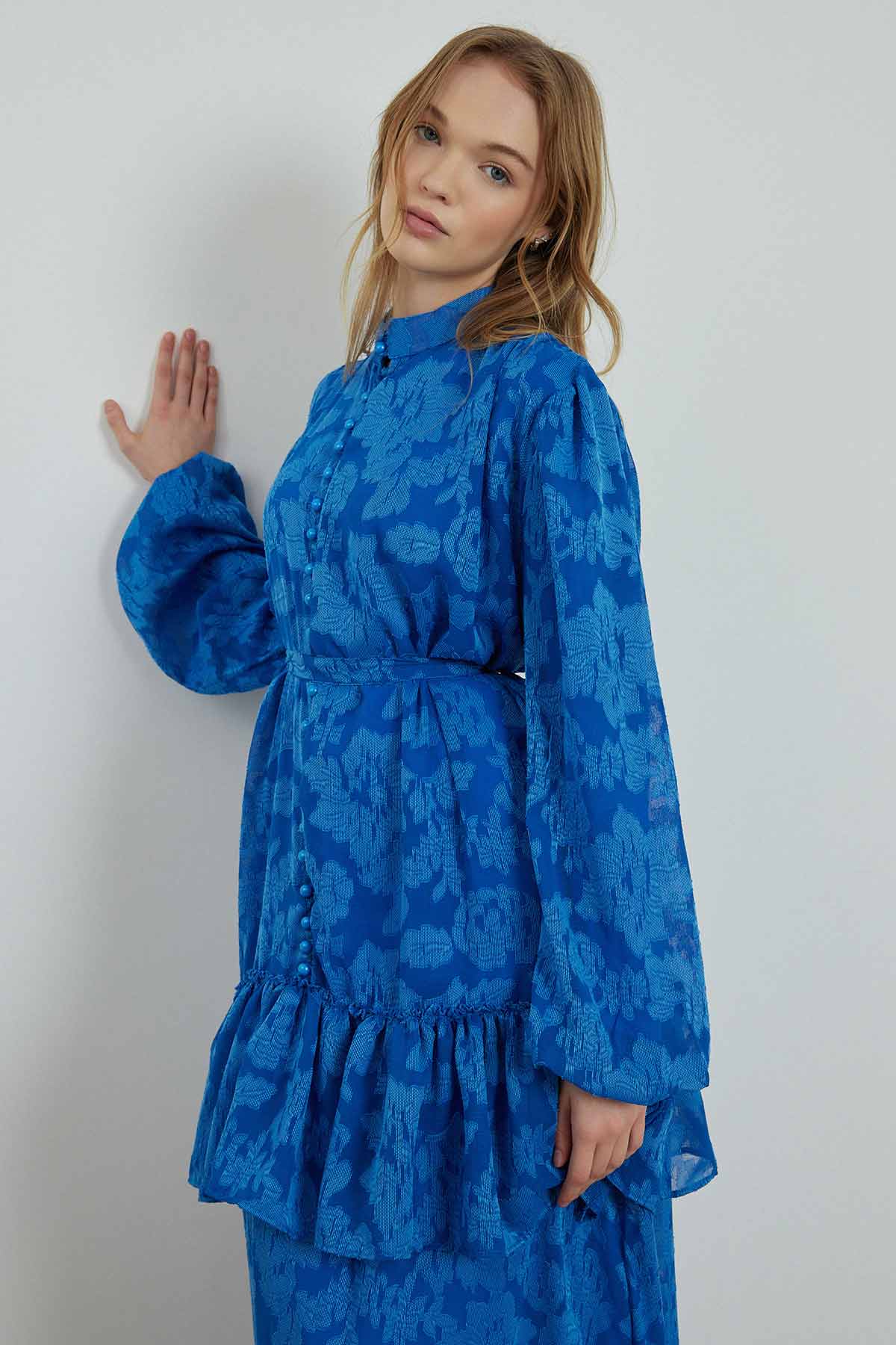 الأزهار تول منقوشة ساكس اللباس الأزرق