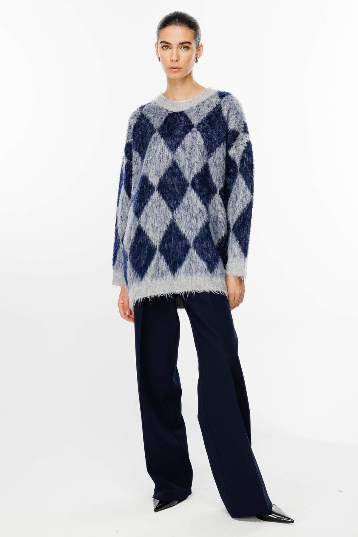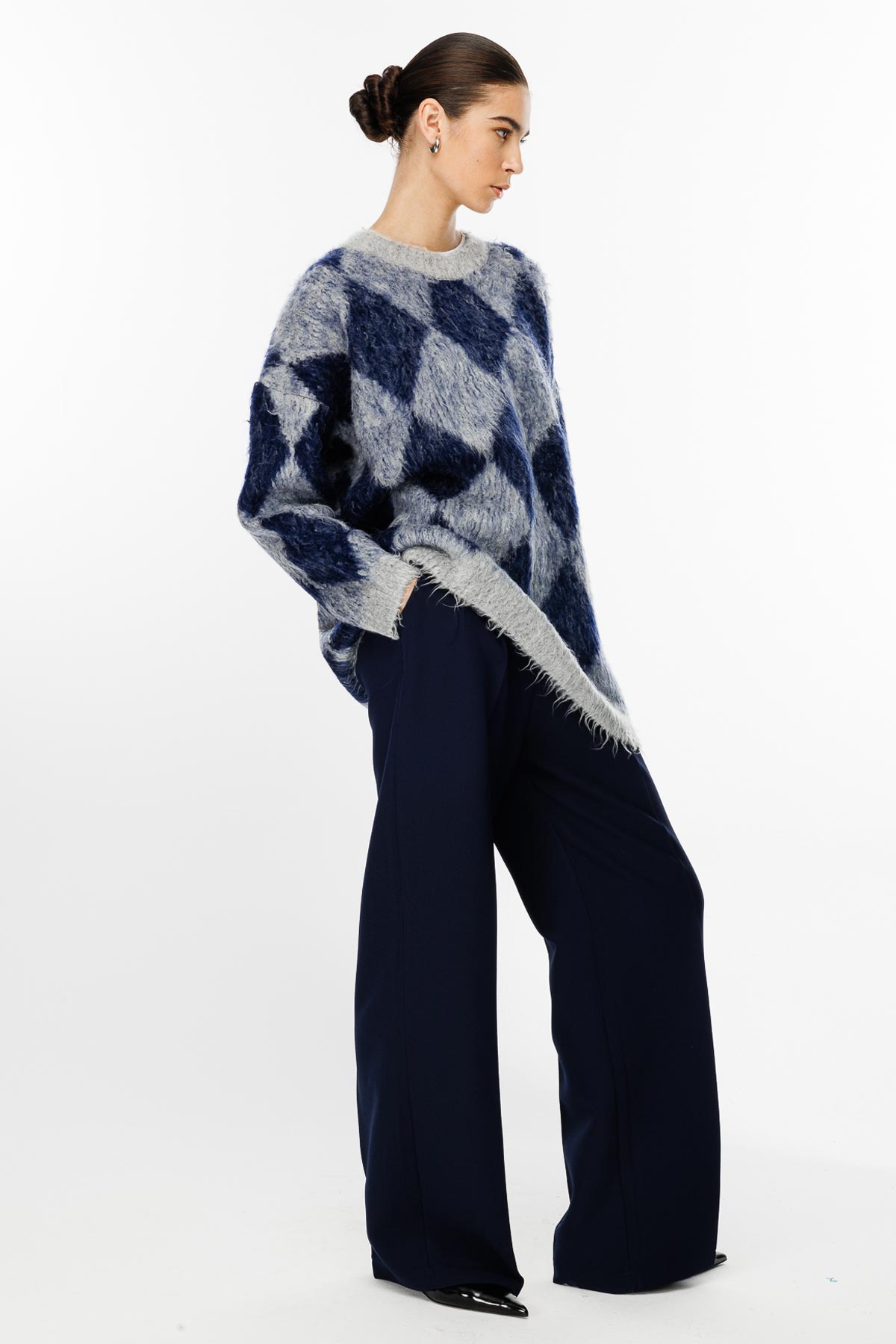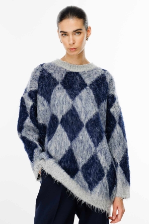 مميزات السترة ذات المربعات: رقبة دائرية، أكتاف منسدلة، سترة تريكو بقصة مريحة مع نمط مربعات وملمس كومة مرتفعة. 75% أكريليك 25% بيس. ضعه ليجف أو نظفه بالتنظيف الجاف.