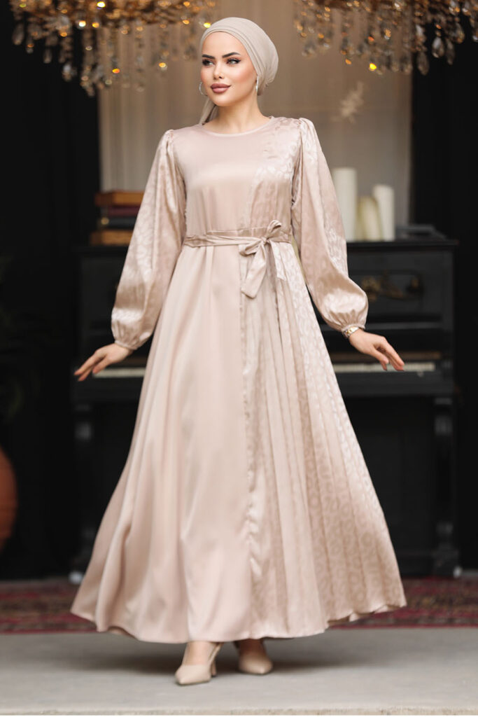 فستان حجاب بيج منقوش بالزهور 22052 بيج