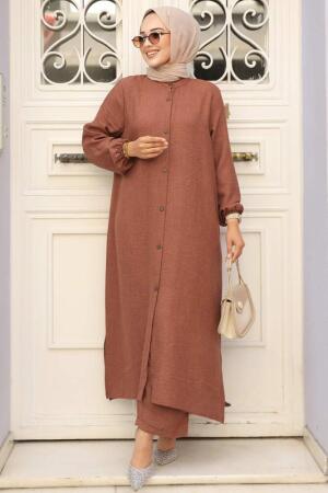 بدلة حجاب بنية مزدوجة بأزرار 19017kh