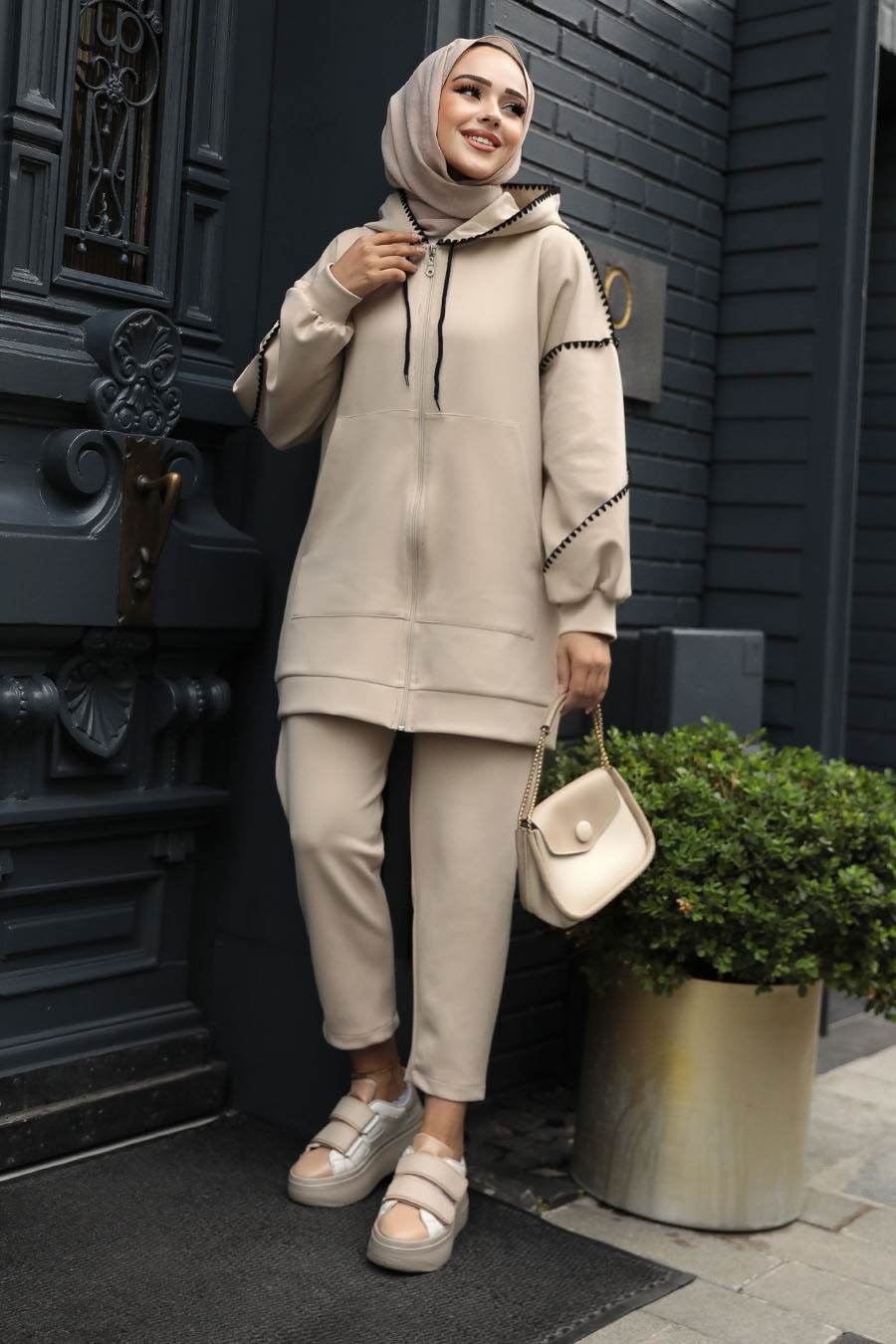بدلة حجاب بيج بسحاب مزدوجة 12621 بيج