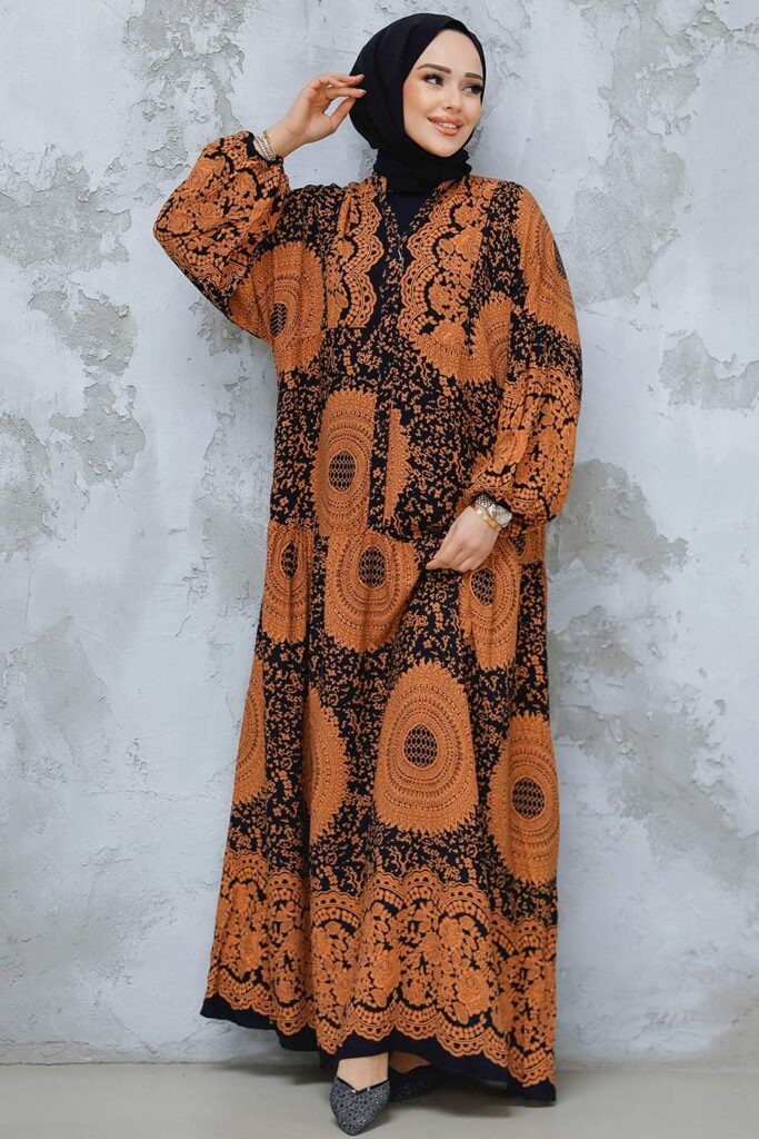 فستان حجاب أخضر بطيات على الأرض 22051cy