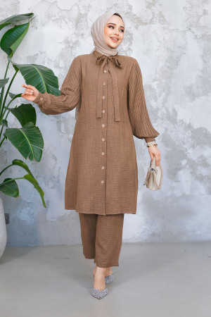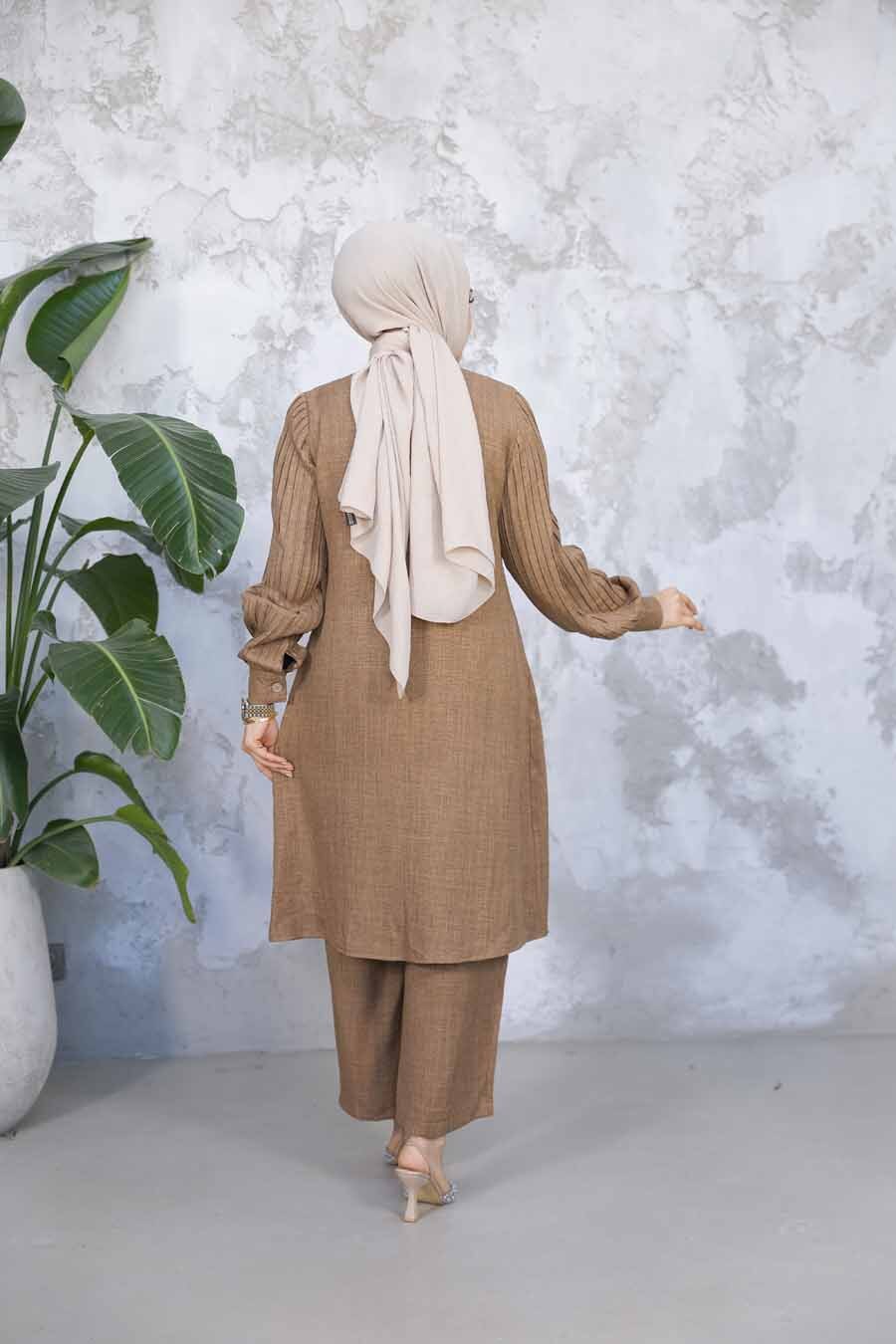 بدلة حجاب كراميل مزدوجة بأكمام مطوية 51991krml