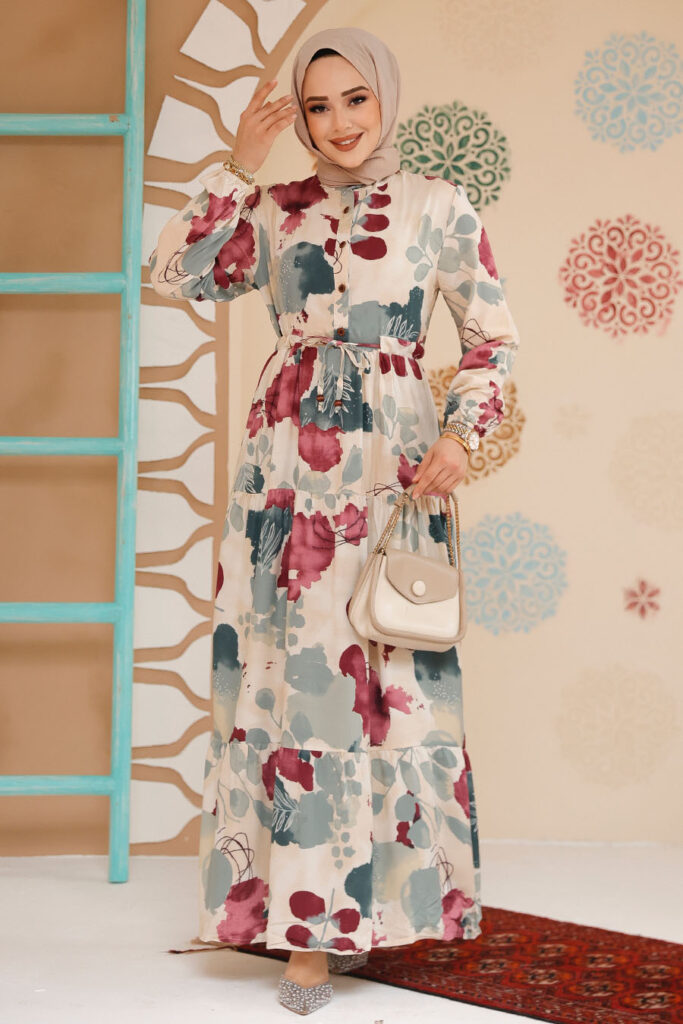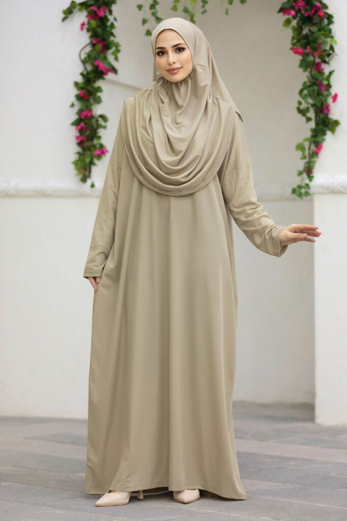 فستان حجاب بيج بتفاصيل جبر 59861 بيج