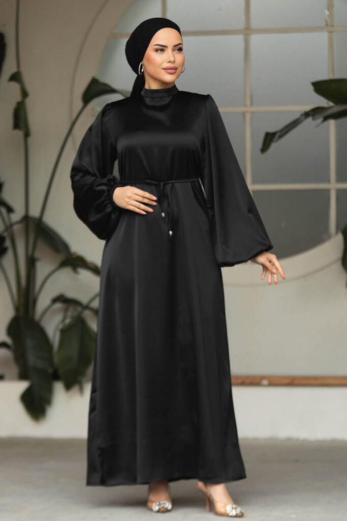 نيفا ستايل – فستان حجاب أسود بأكمام بالون 30371s