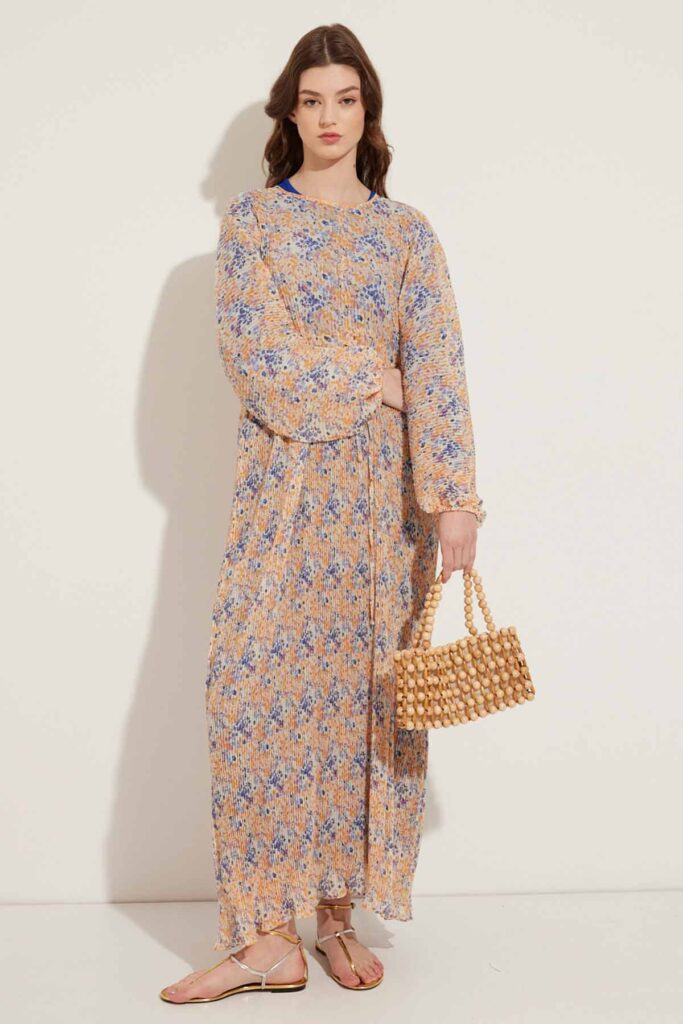 فستان حجاب برتقالي منقوش بالزهور 60901t