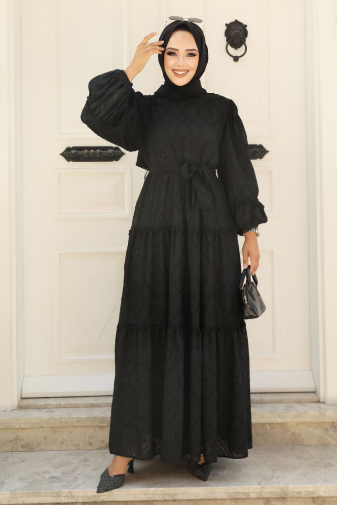 نيفا ستايل – فستان حجاب أسود بحزام 14131s