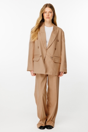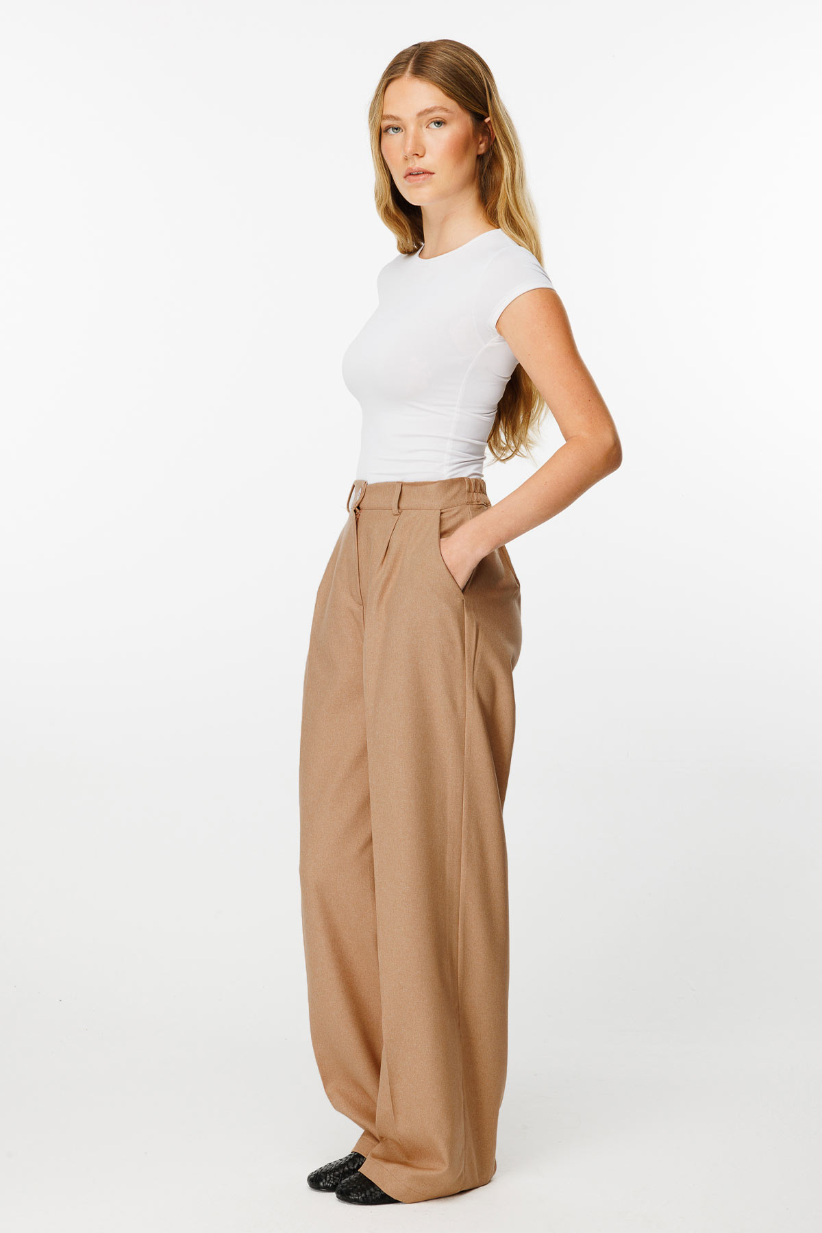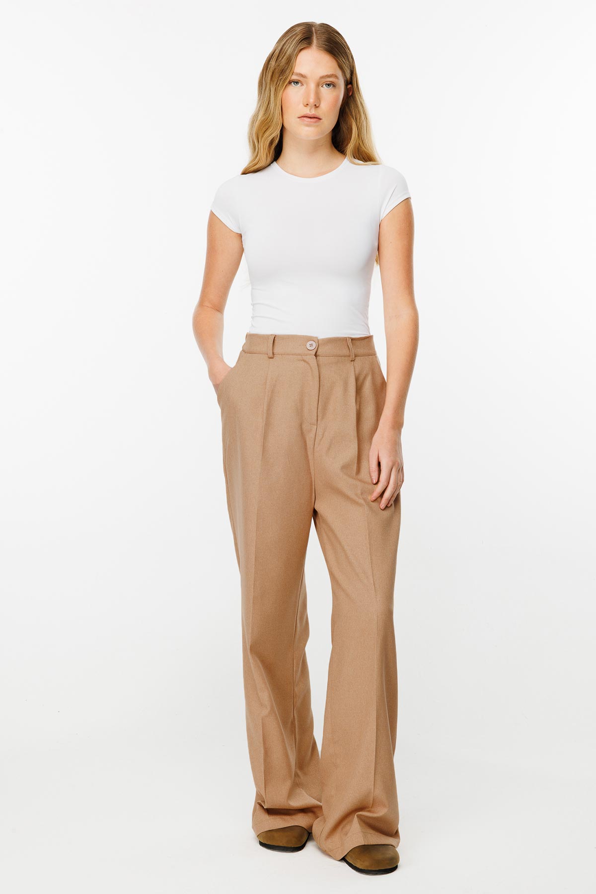 مميزات البنطلون البلاتزو الفاخر: مصنوع من قماش منسوج فاخر، خصر عالي، حلقات للحزام، قصة مريحة، أزرار أمامية، جيوب جانبية، البنطلون البلاتزو ذو الطيات 64% بيس، 32% فيسكوز، 4% ليكرا. يغسل مقلوبًا على درجة حرارة 30 درجة، يكوى مقلوبًا على درجة حرارة منخفضة.