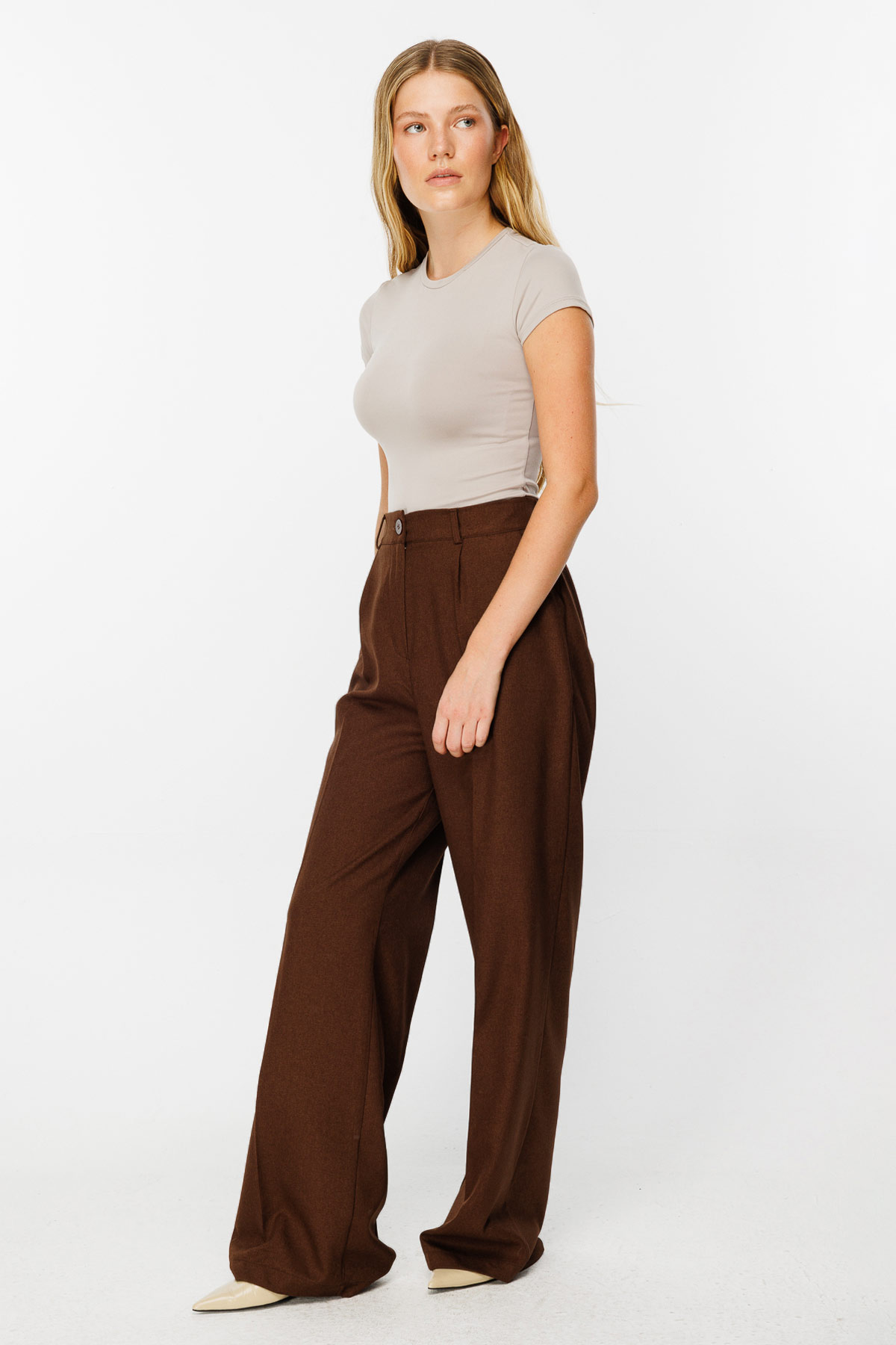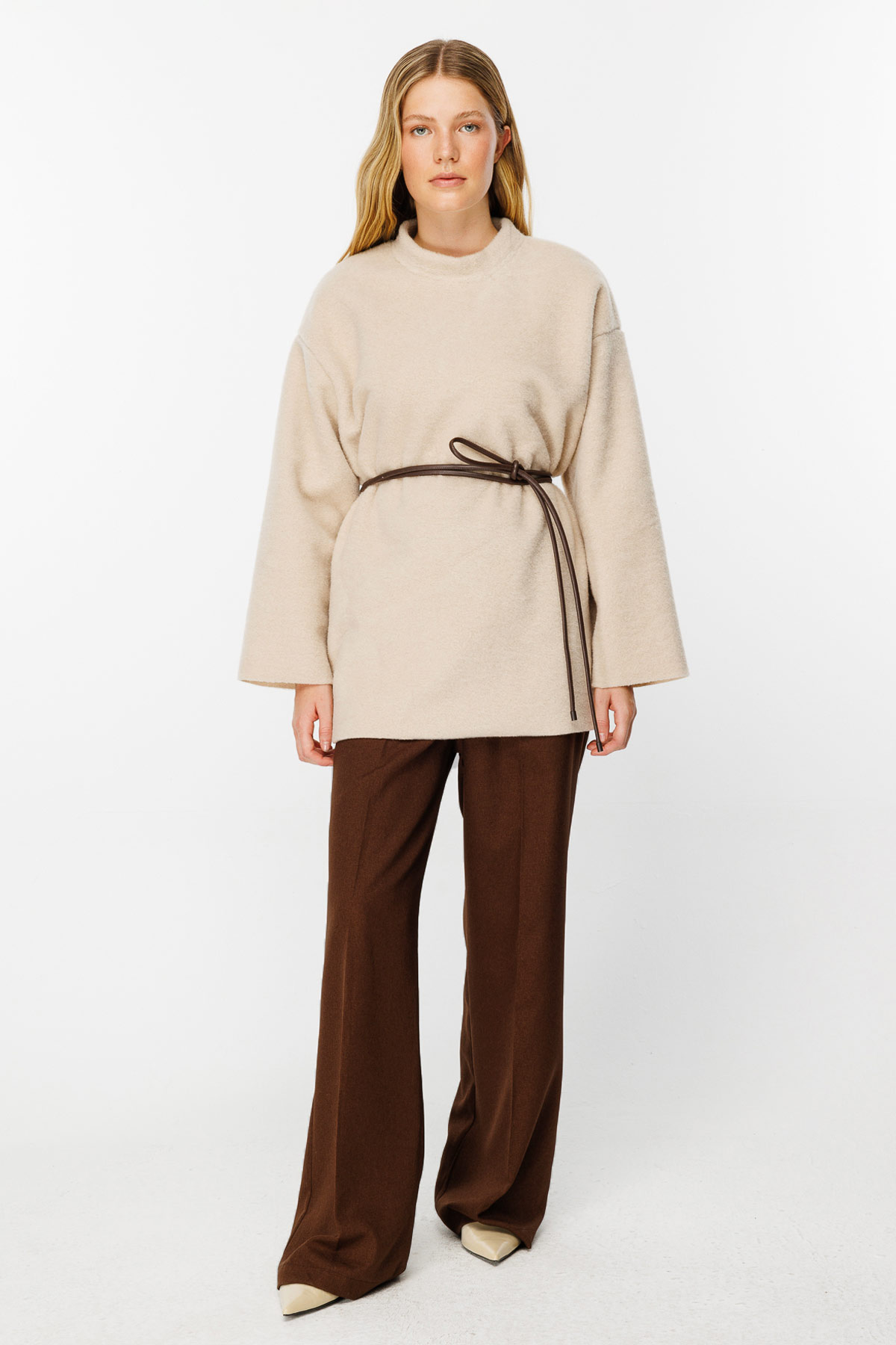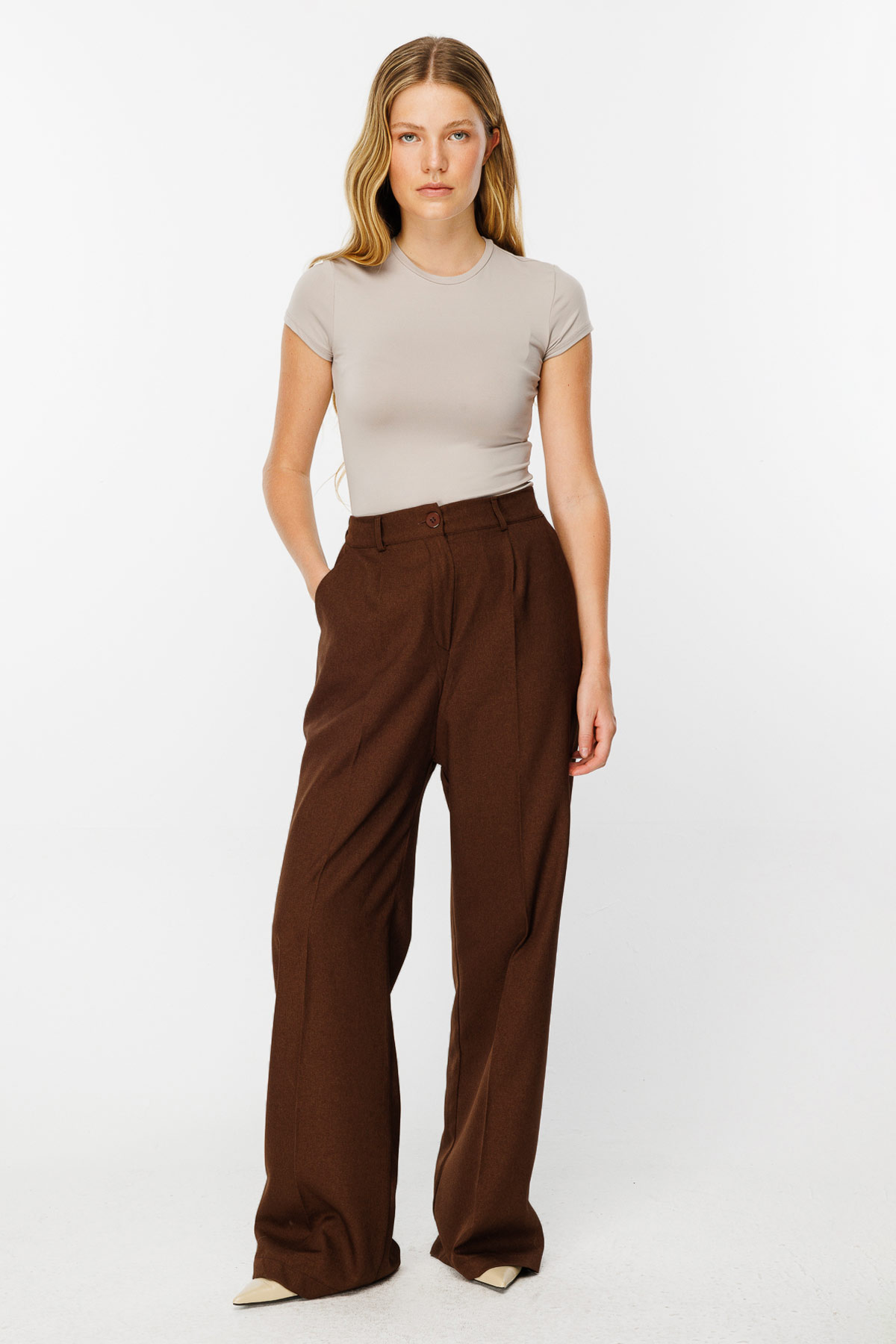 مميزات البنطلون البلاتزو الفاخر: مصنوع من قماش منسوج فاخر، خصر عالي، حلقات للحزام، قصة مريحة، أزرار أمامية، جيوب جانبية، البنطلون البلاتزو ذو الطيات 64% بيس، 32% فيسكوز، 4% ليكرا. يغسل مقلوبًا على درجة حرارة 30 درجة، يكوى مقلوبًا على درجة حرارة منخفضة.