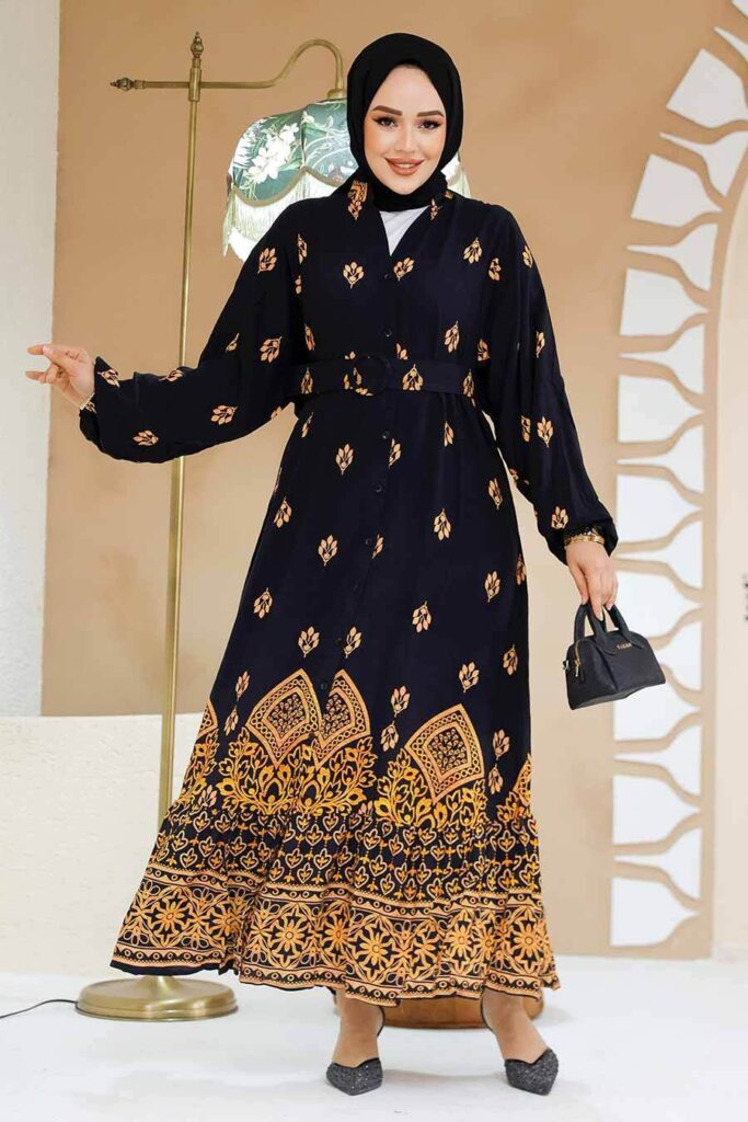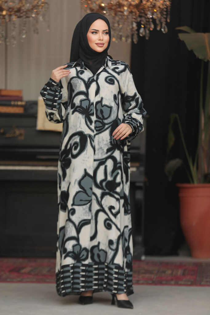 فستان حجاب حجري منقوش بالزهور 22052tas