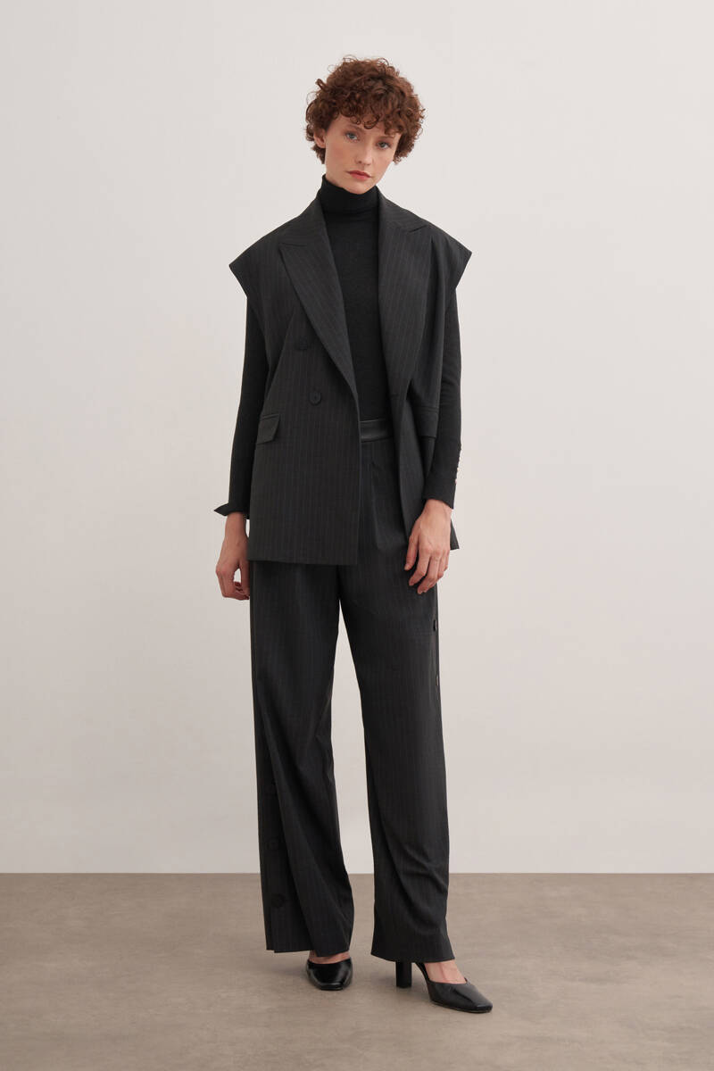 خليط القماش: النسيج الرئيسي: 3% إيلاستان، القماش الأساسي: 34% فيسكوز، القماش الأساسي: 63% PES الغسيل: لا تغسل المبيضات: لا تستخدم المبيضات، التجفيف: لا ينطبق التجفيف بالمجفف، الحديد: الحديد على درجة حرارة 110 درجة مئوية كحد أقصى، التنظيف الجاف: يمكن إجراء التنظيف الجاف.