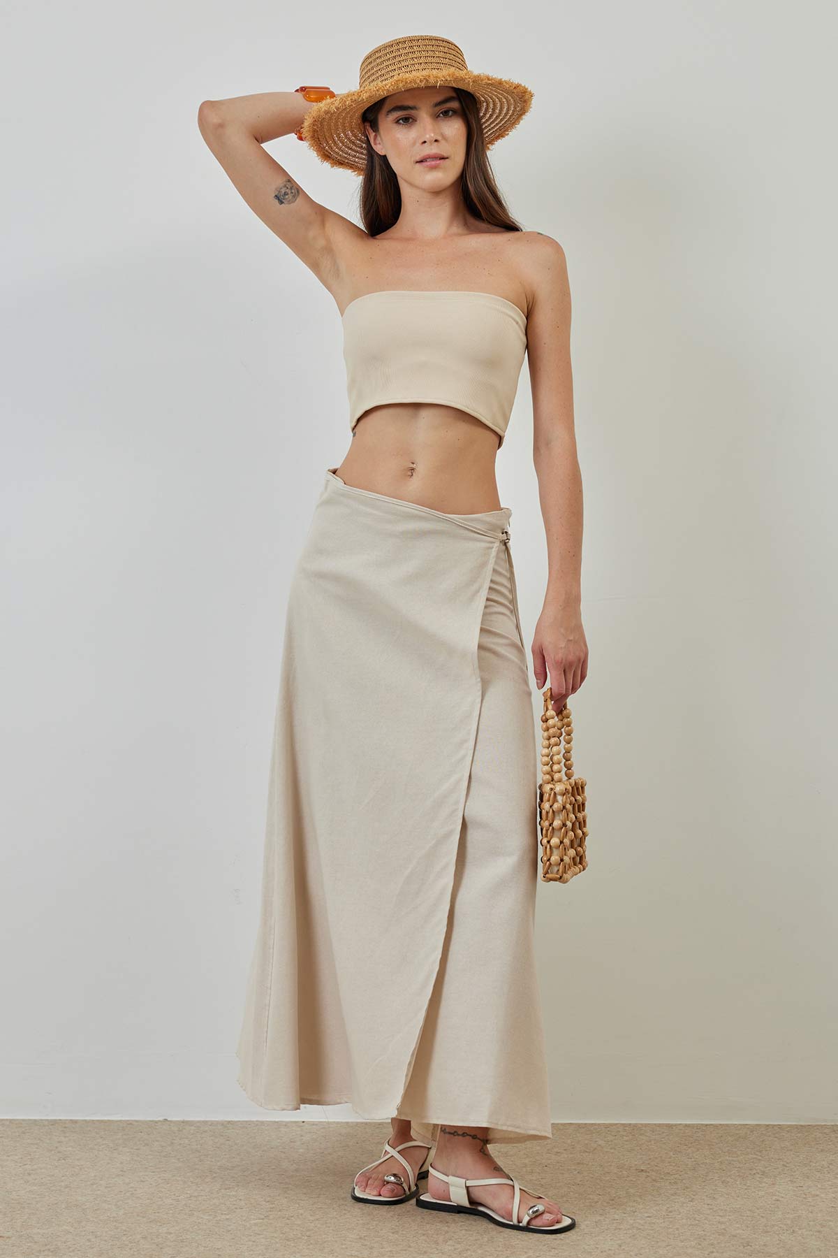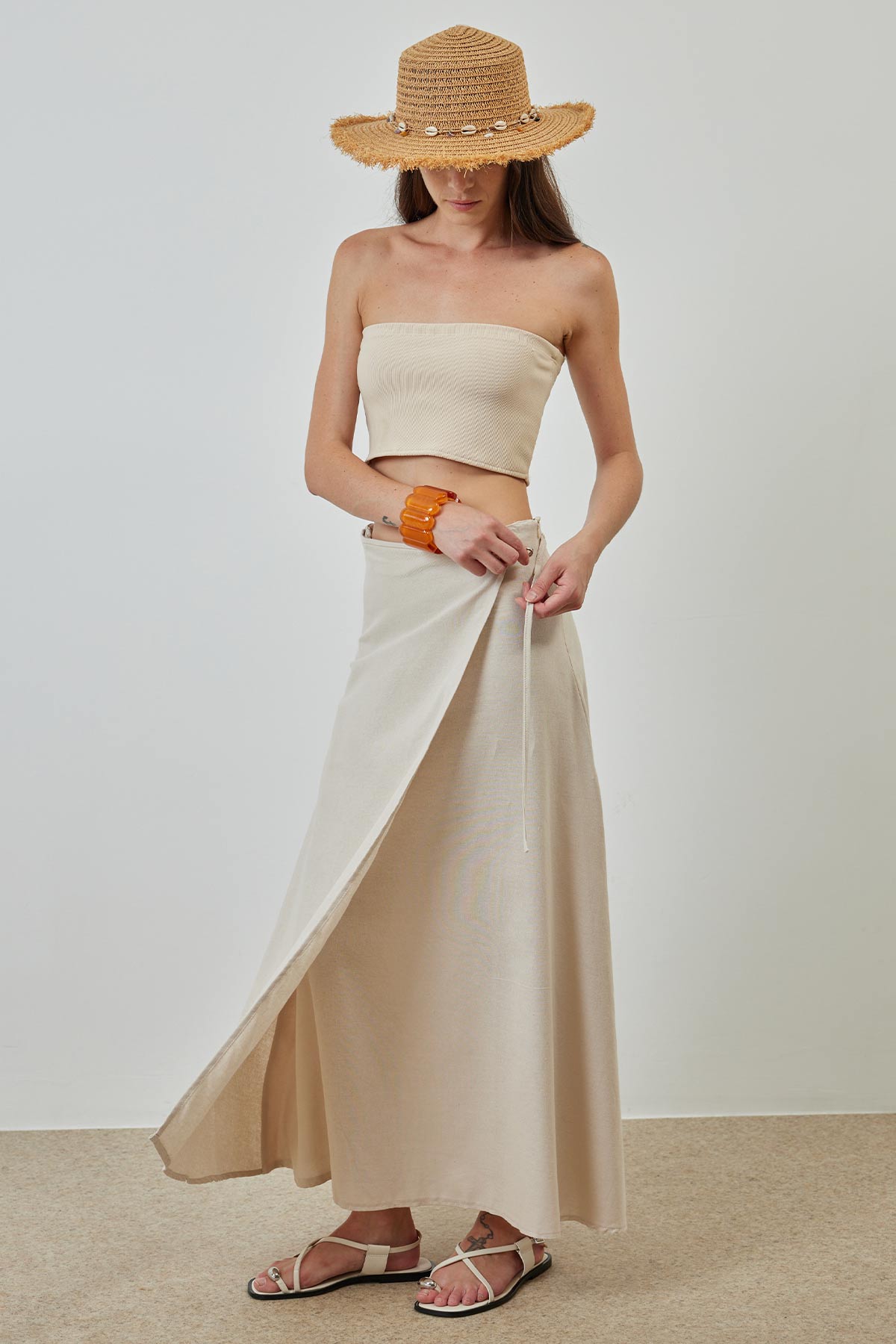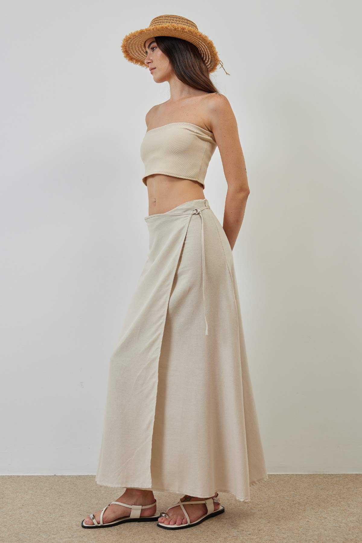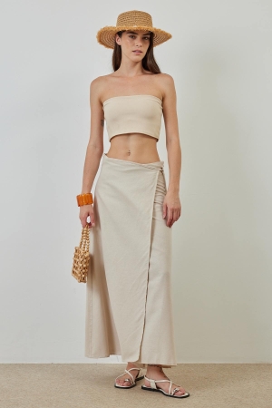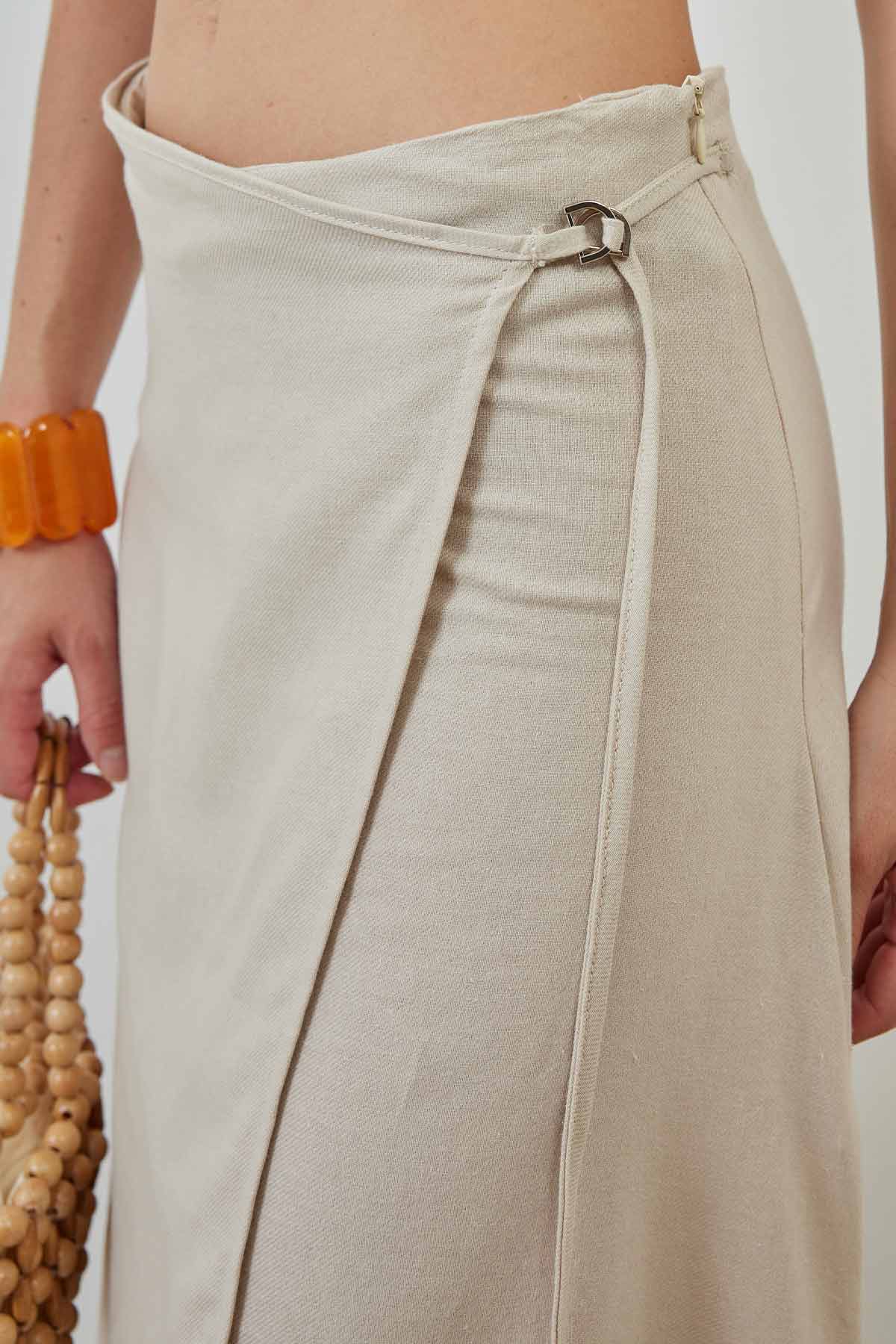 تنورة بيج مع إكسسوار بإبزيم على شكل حرف D