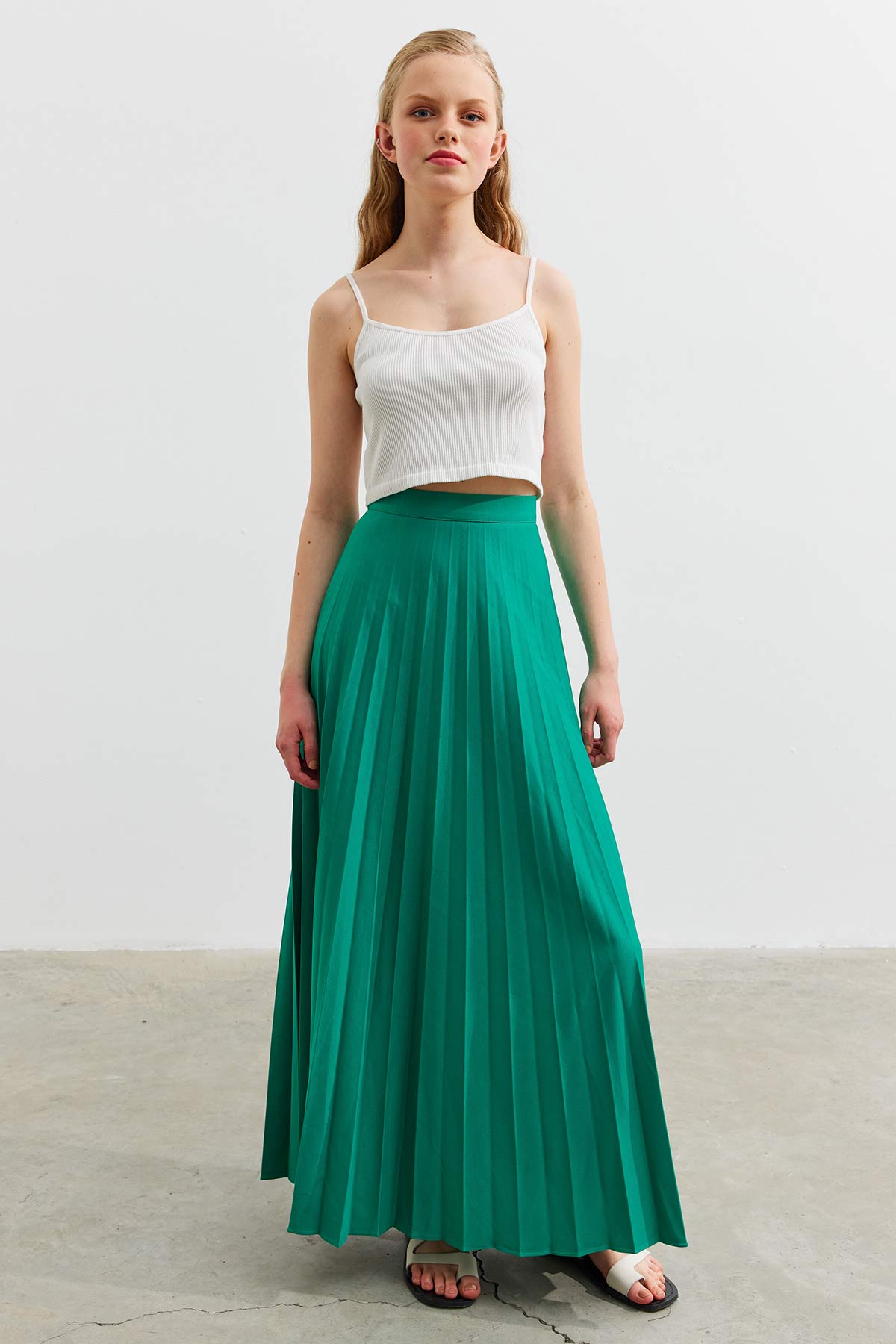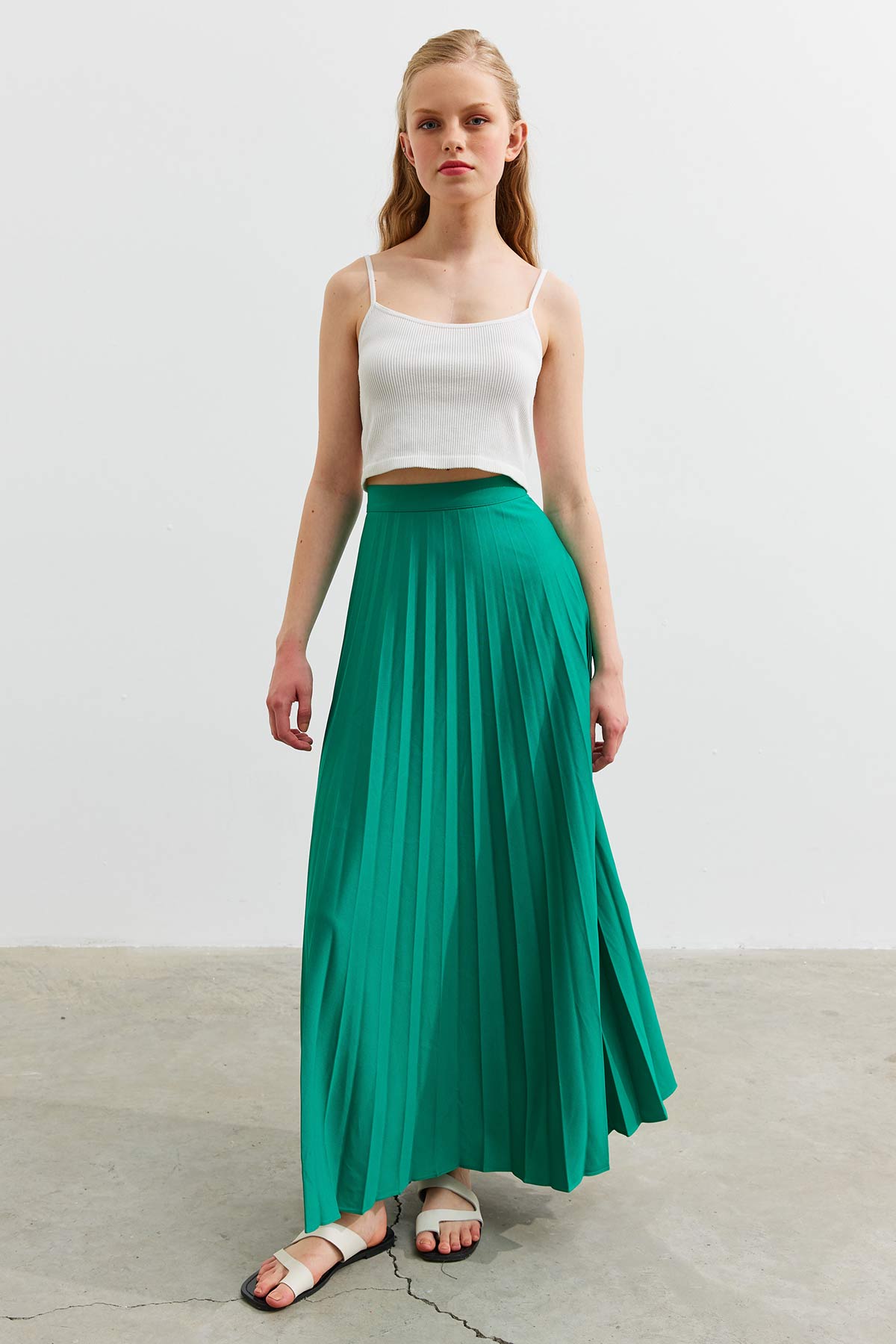 معلومات القماش: 100% بوليستر، تعليمات الغسيل الضرورية متضمنة في قسم الملصق الداخلي للمنتج، وهو غير مبطن. لا يظهر من الداخل أبعاد المنتج: 36: طول المنتج: 100 سم – الخصر: 70 سم38: طول المنتج: 100 سم – الخصر: 74 سم40: طول المنتج: 100 سم – الخصر: 78 سم42: طول المنتج: 100 سم – الخصر: 82 سم مقاس المنتج في الموديل هو مقاس “36”. القياسات: الصدر: 84 سم الخصر: 61 سم الأرداف: 90 سم الارتفاع: 1.74 سم