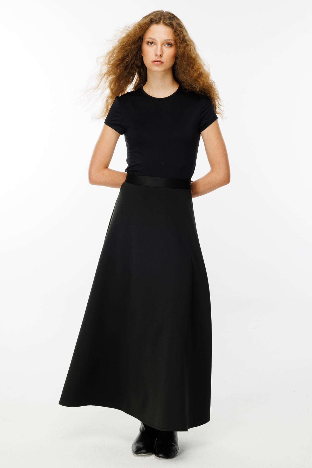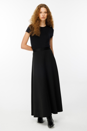 ميزات تنورة سكوبا: تنورة طويلة واسعة الخصر مع سحاب جانبي مخفي وفتحة في الخلف 93% ناعمة و7% تنظيف جاف فقط.