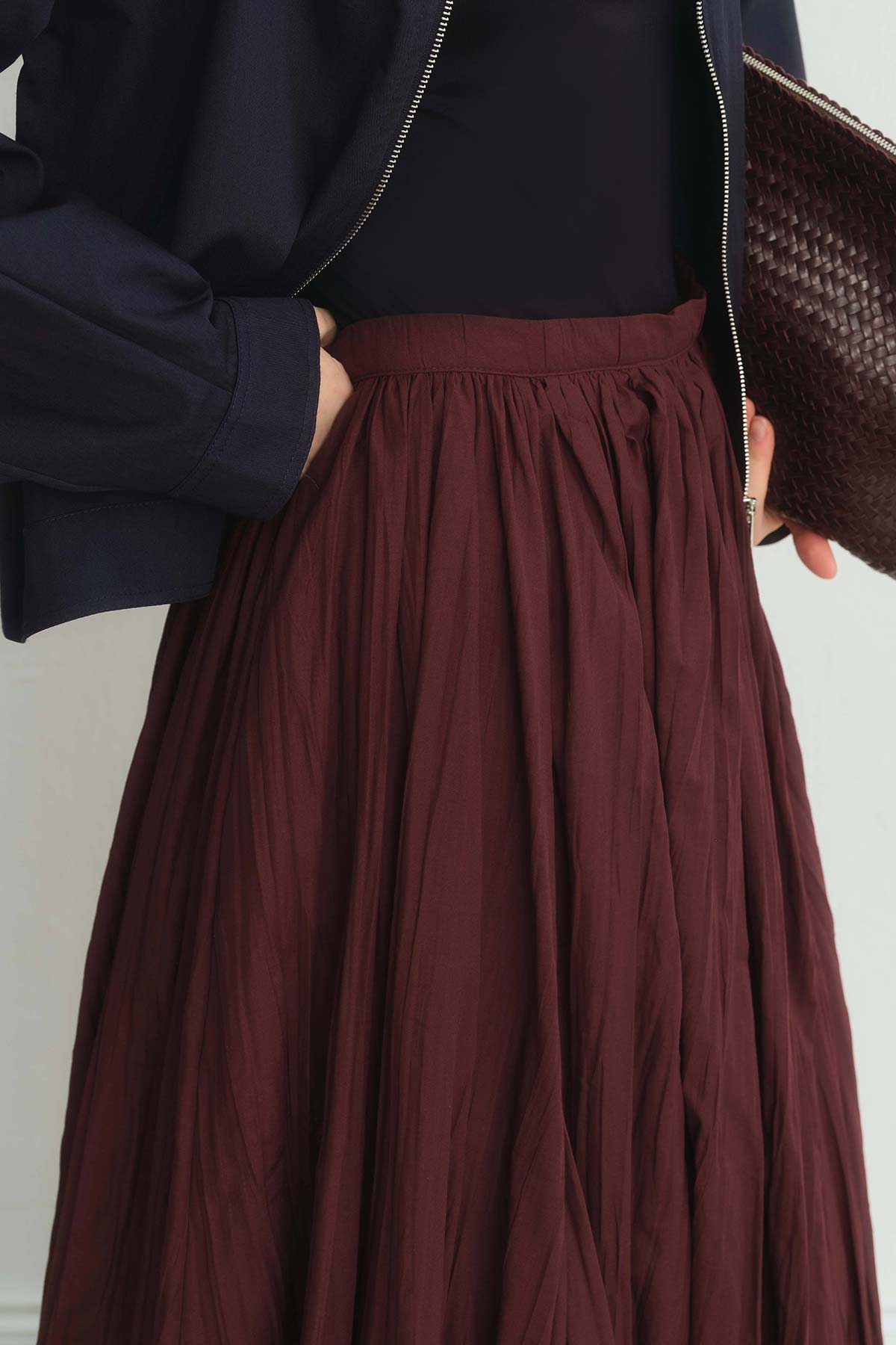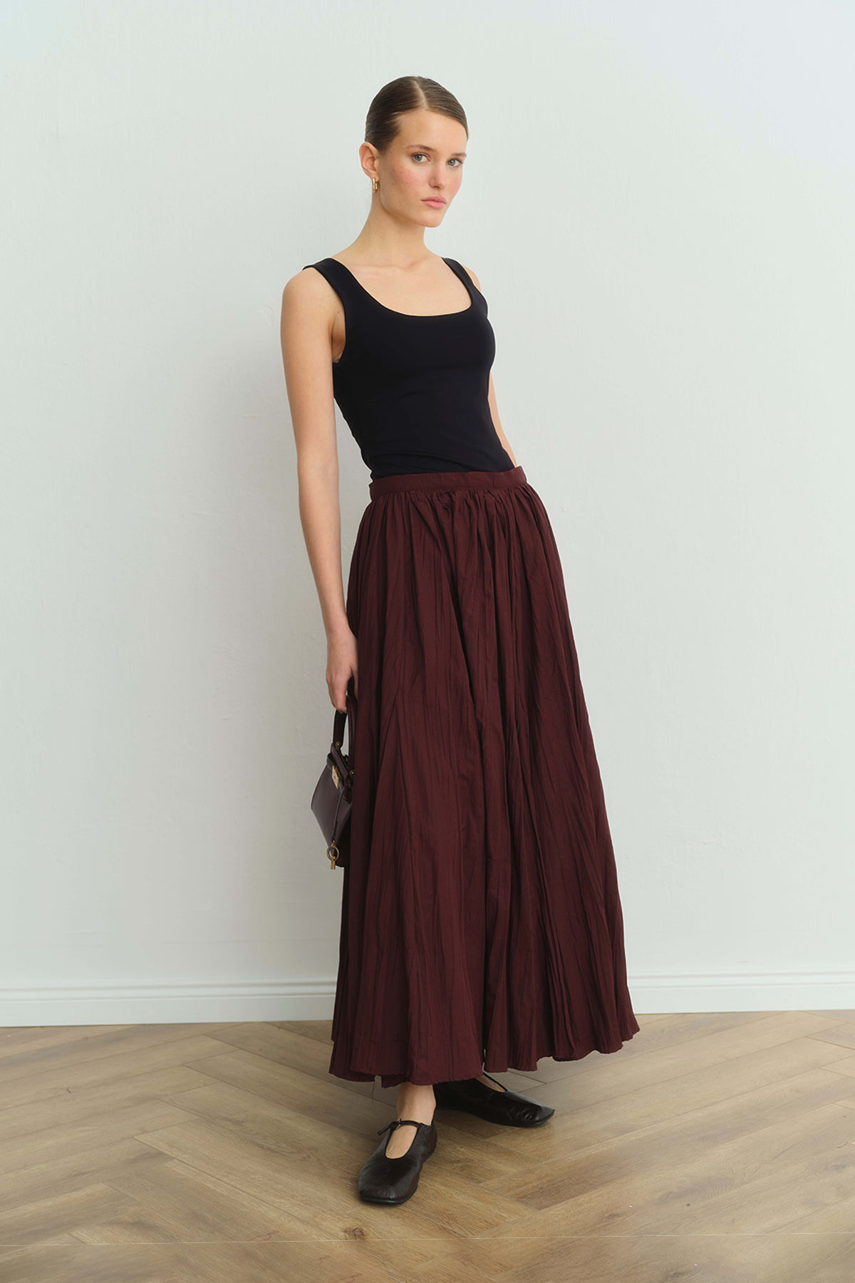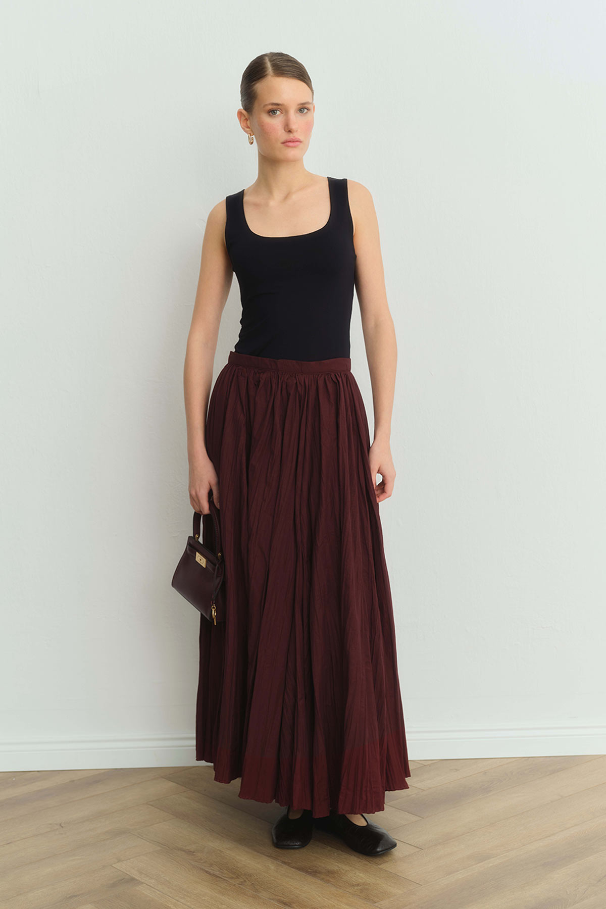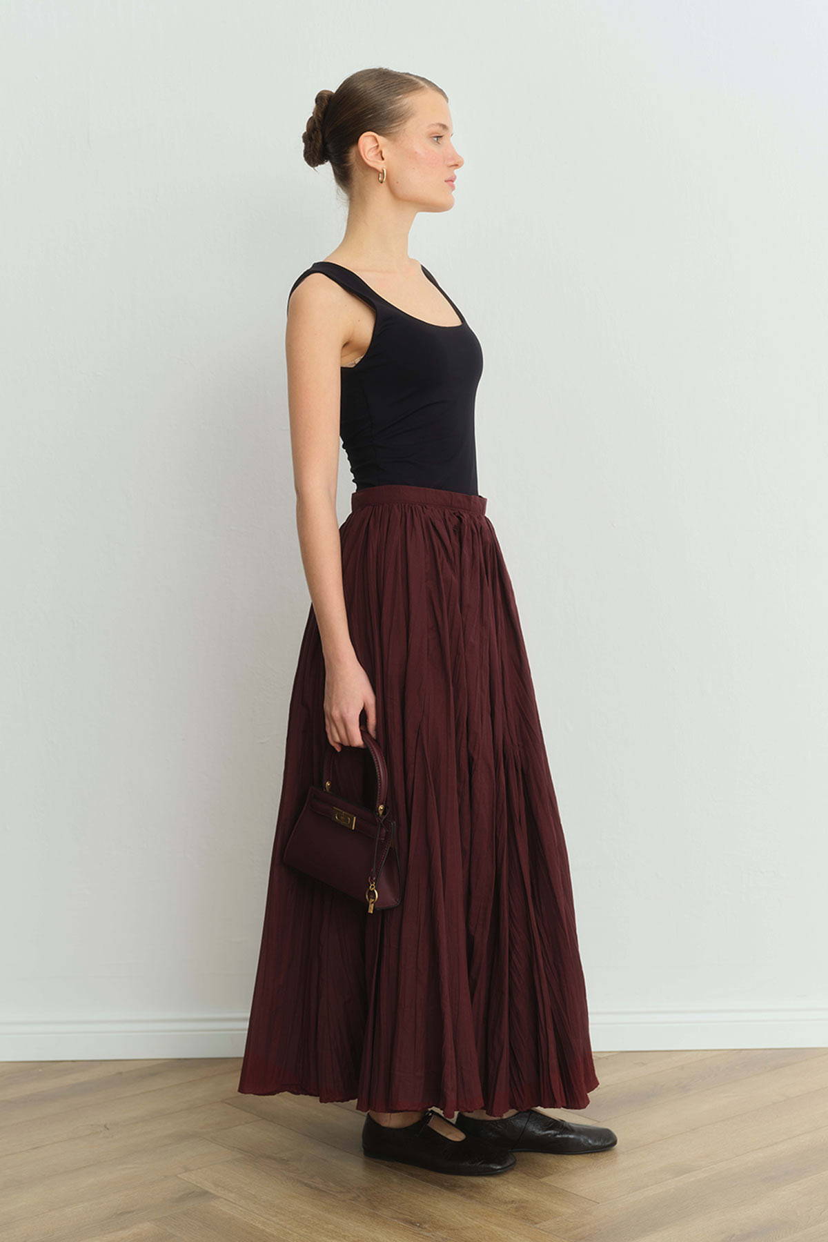 تنورة طويلة بورجوندي مطوي