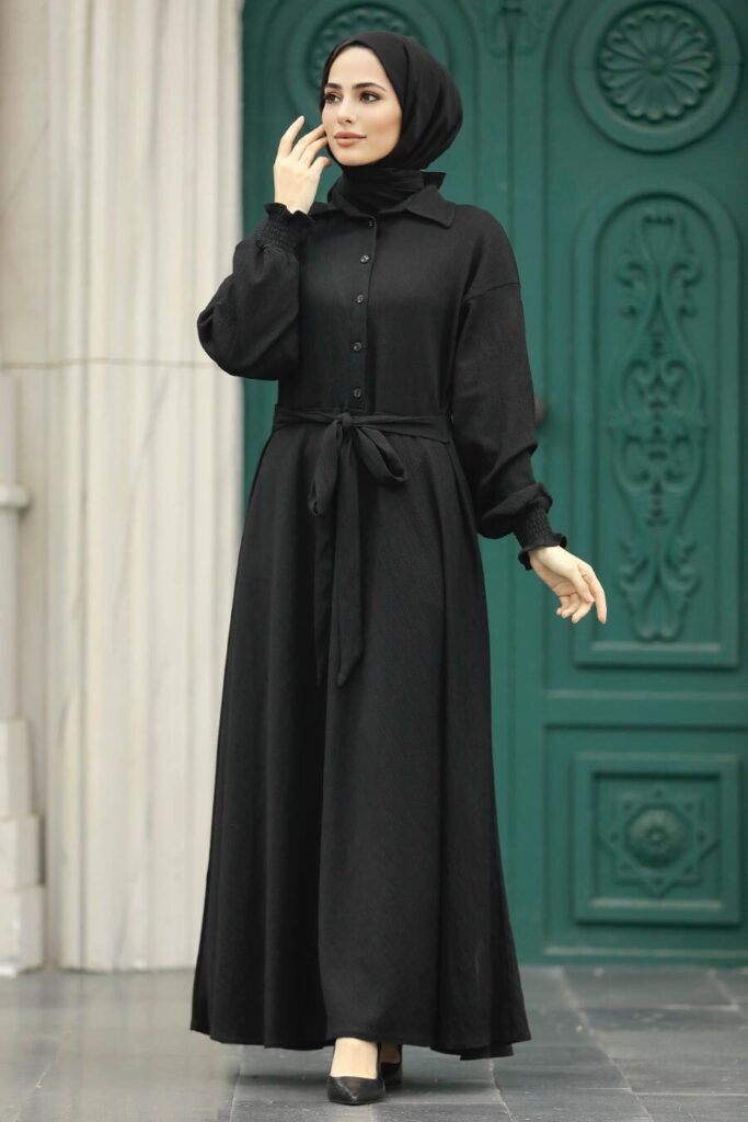 نيفا ستايل – فستان حجاب أسود بأزرار 5858s
