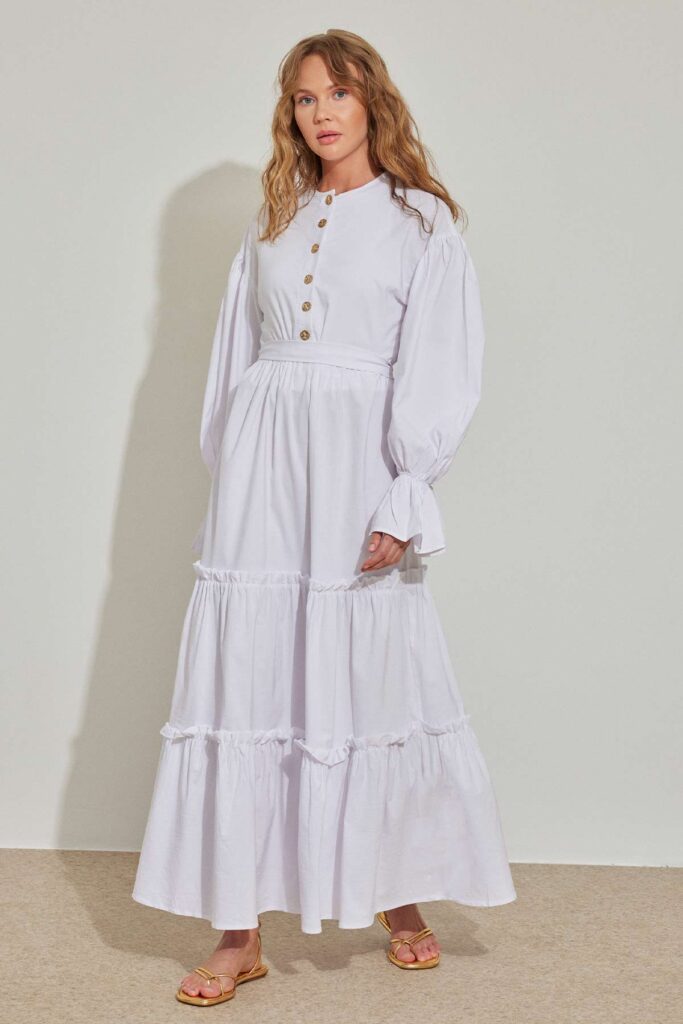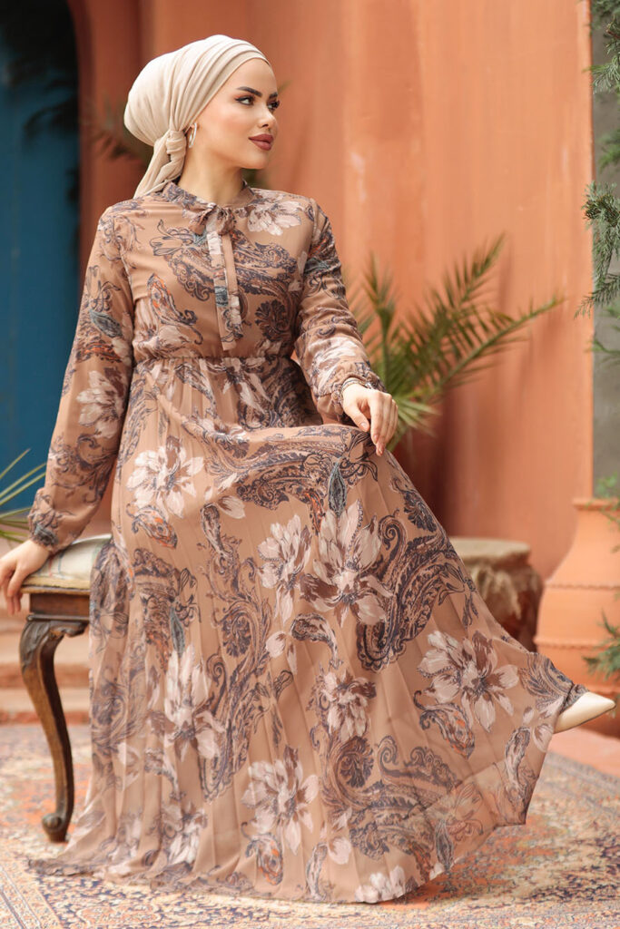 نيفا ستايل – فستان بوبلين حجاب كريمي بطيات 57342kr