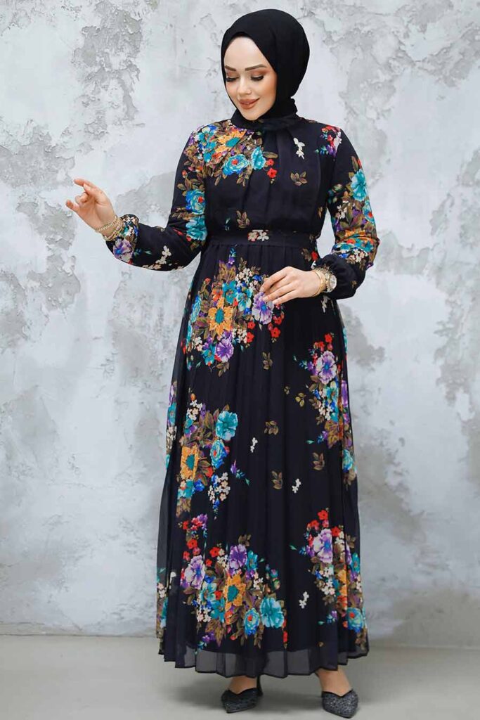 نيفا ستايل – فستان حجاب أسود منقوش بالزهور 27942s