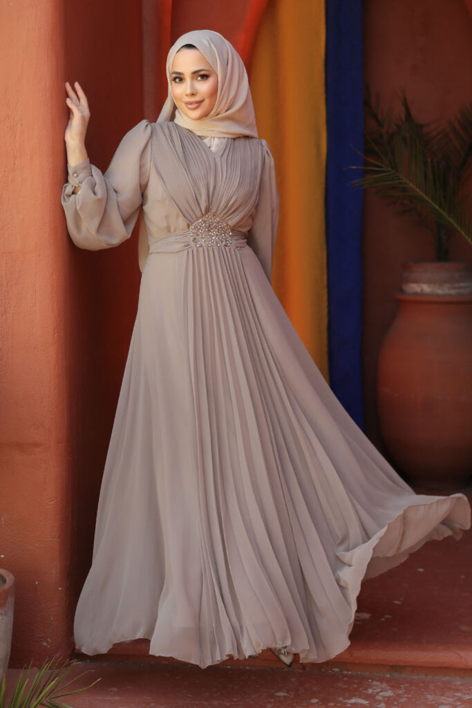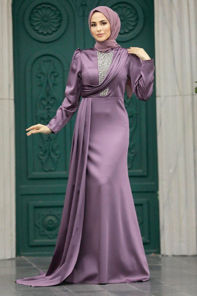 فستان سهرة للحجاب – فستان سهرة للحجاب بتفاصيل من المنك 4448v