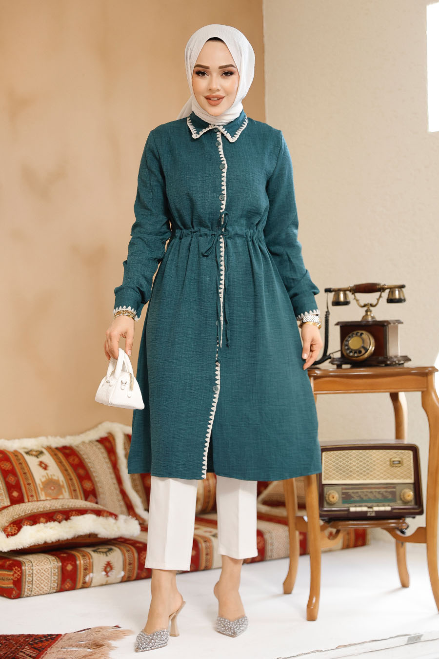ميزة القماش: مصنوع من 80% بوليستر و20% قطن. ميزة المنتج: ياقة كلاسيكية، وأكمام طويلة، وأساور أكمام، وتفاصيل مطرزة، طول المنتج: 100 سم. لون المنتج: أخضر زمردي – قد يكون هناك اختلاف في لون المنتج بسبب تصوير نمط الحياة. يباع فقط على شكل تونيك مقاس العينة: 38 الغسيل: يمكن غسله على درجة حرارة 30 درجة دون عصر قياسات الموديل الارتفاع: 165 سم الخصر: 67 سم الأرداف: 98 سم الصدر: 85 سم الوزن: 57.
