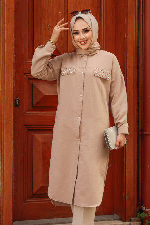 مميزات القماش: مصنوع من قماش قطني 100% مميزات المنتج: ياقة كلاسيكية، كم طويل، عنوان، من الأمام إلى الوسط، طويل، من الخلف، طويل، تفاصيل الجيب ومطرز باللؤلؤ. يباع فقط على شكل تونيك مقاس العينة: 38 الغسيل: يمكن غسله على درجة حرارة 30 درجة دون عصر قياسات الموديل الارتفاع: 165 سم الخصر: 67 سم الأرداف: 98 سم الصدر: 85 سم الوزن: 57.