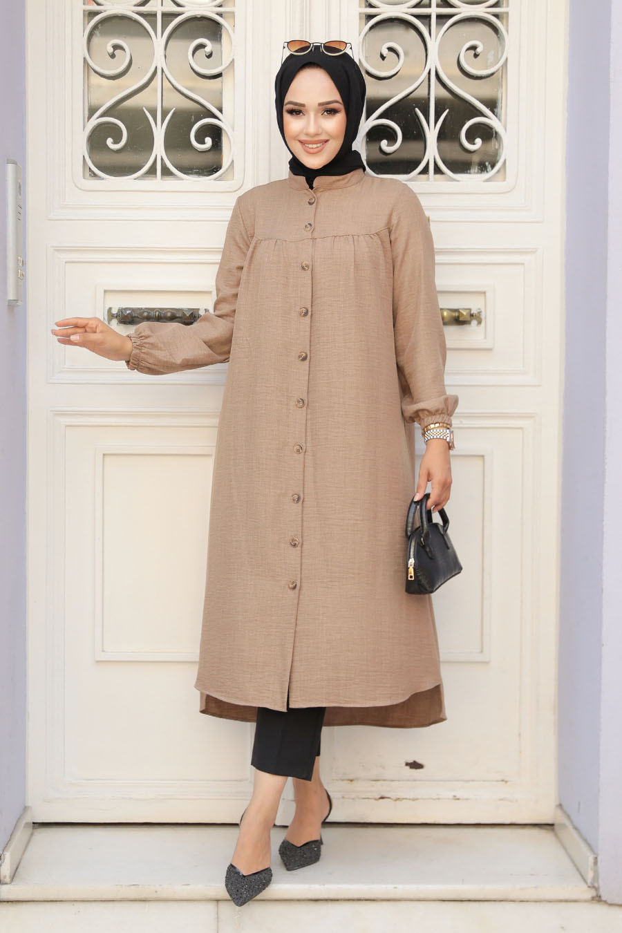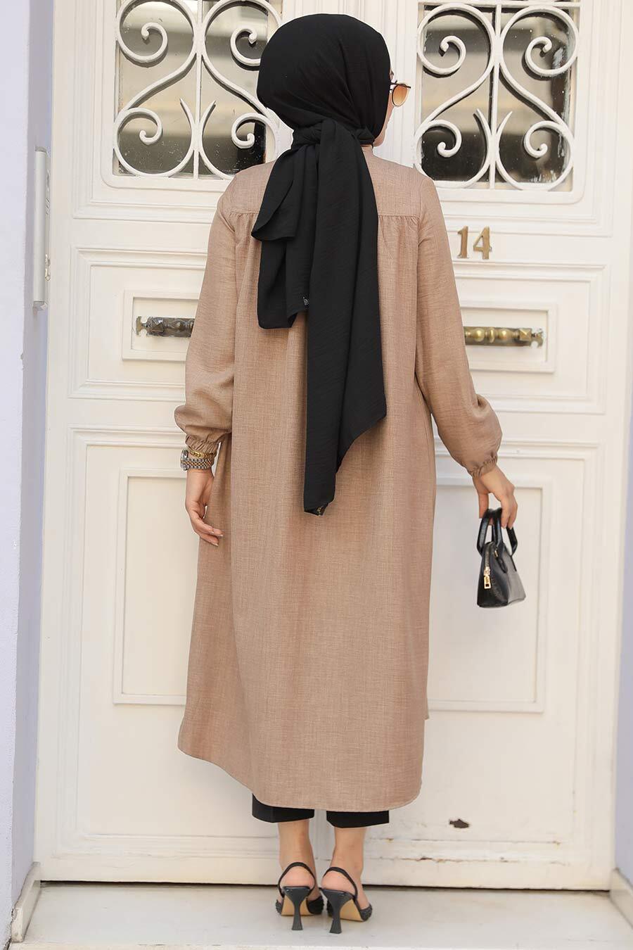 فستان سهرة حجاب – فستان سهرة حجاب ساتان تان 3460tb