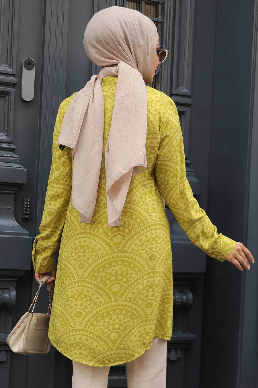 تونيك حجاب فيسكوز أخضر زيتي منقوش 11703yy