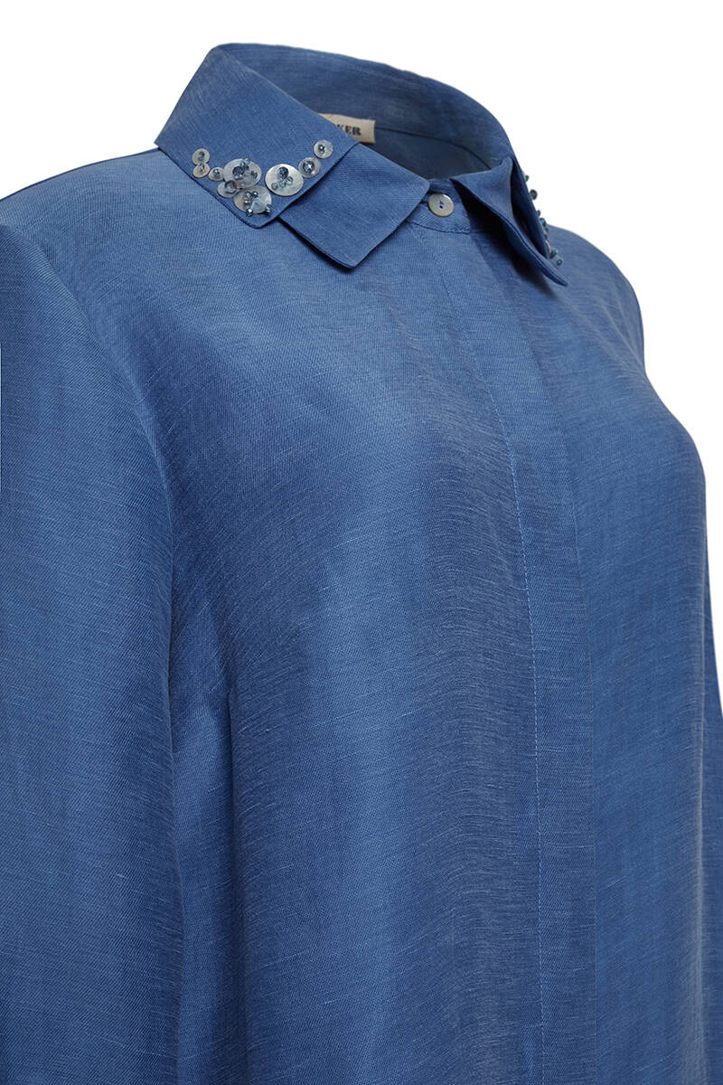 تونيك من الكتان مع تفاصيل مطرزة بياقة نيلي
