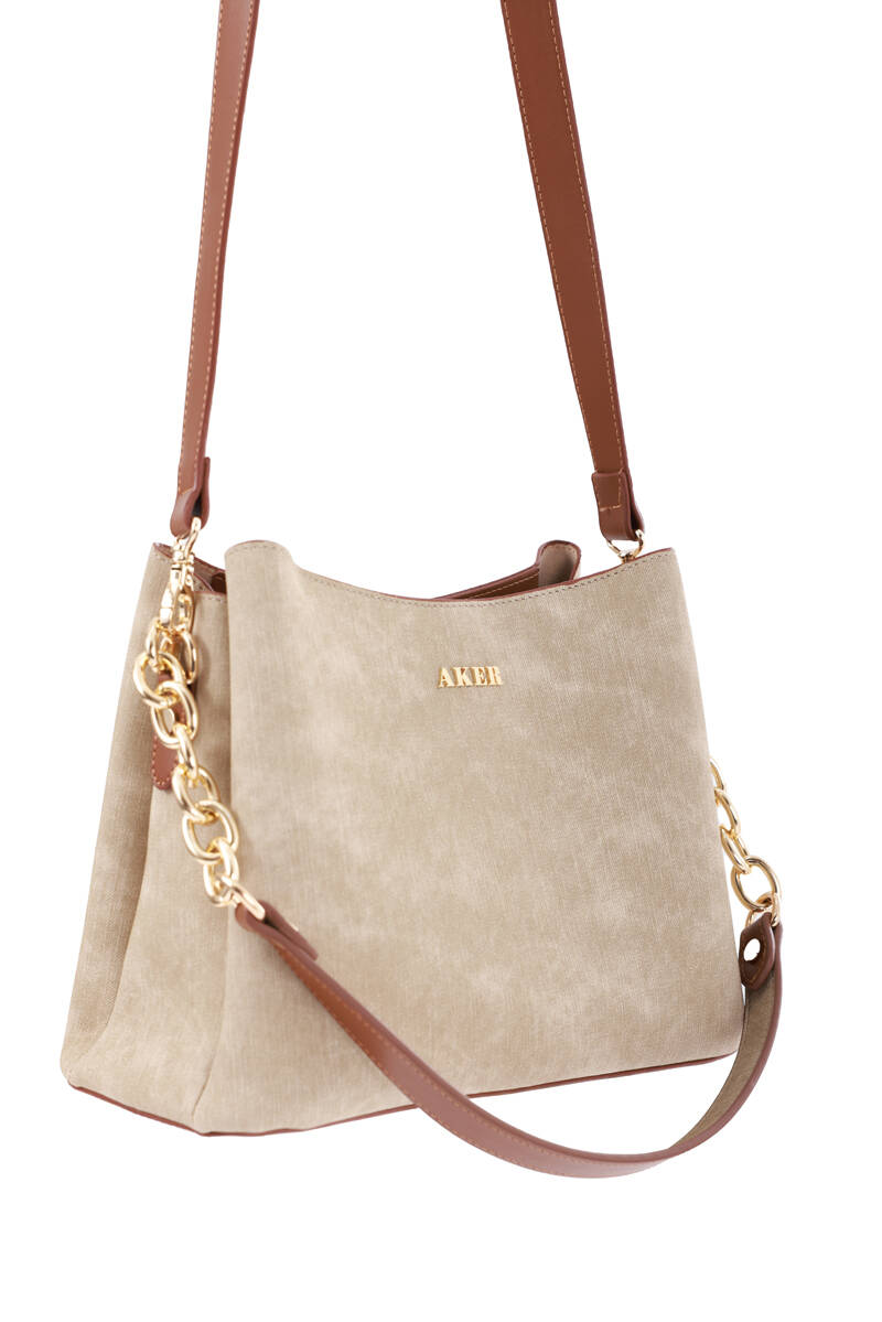 فستان سهرة محجبات – بيج فستان سهرة محجبات مع تفاصيل ريشة 50481 بيج