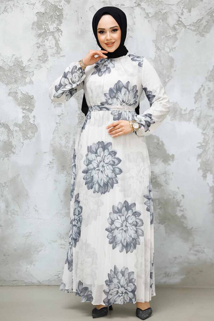 فستان حجاب أبيض منقوش 23453b