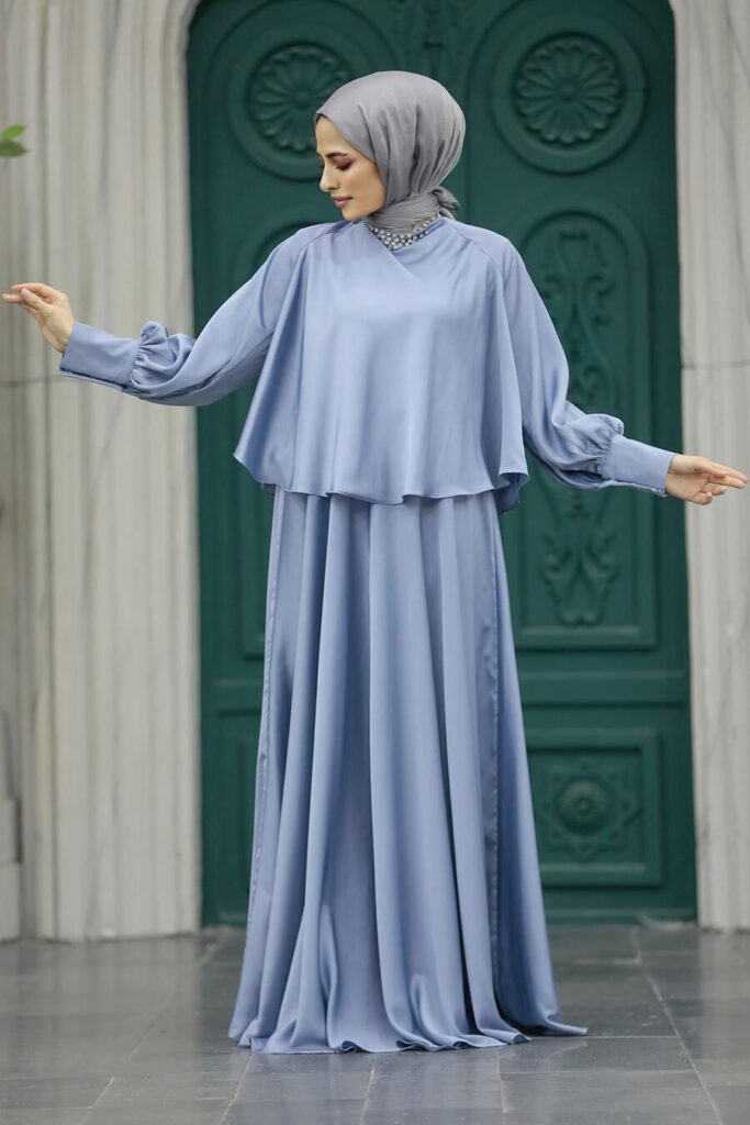 فستان سهرة حجاب – فستان سهرة حجاب أزرق مع كيب 6051 م