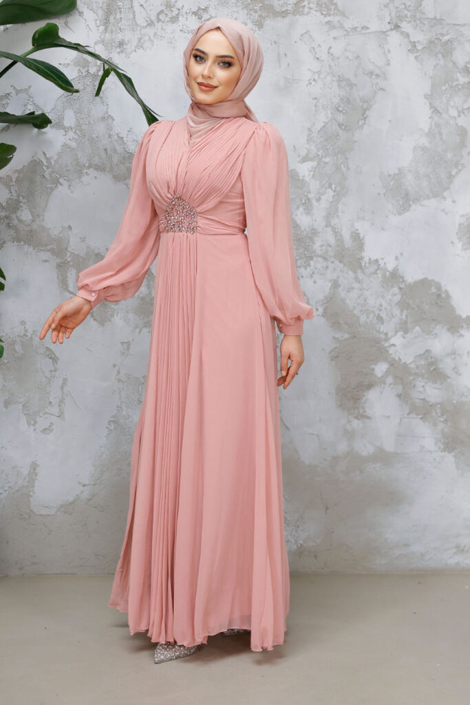 نيفا ستايل – فستان حجاب أخضر زمردي منقوش بالزهور 27941zy
