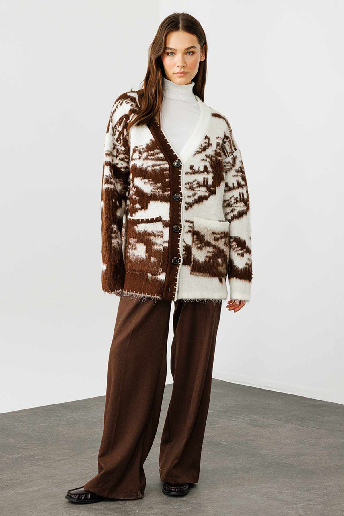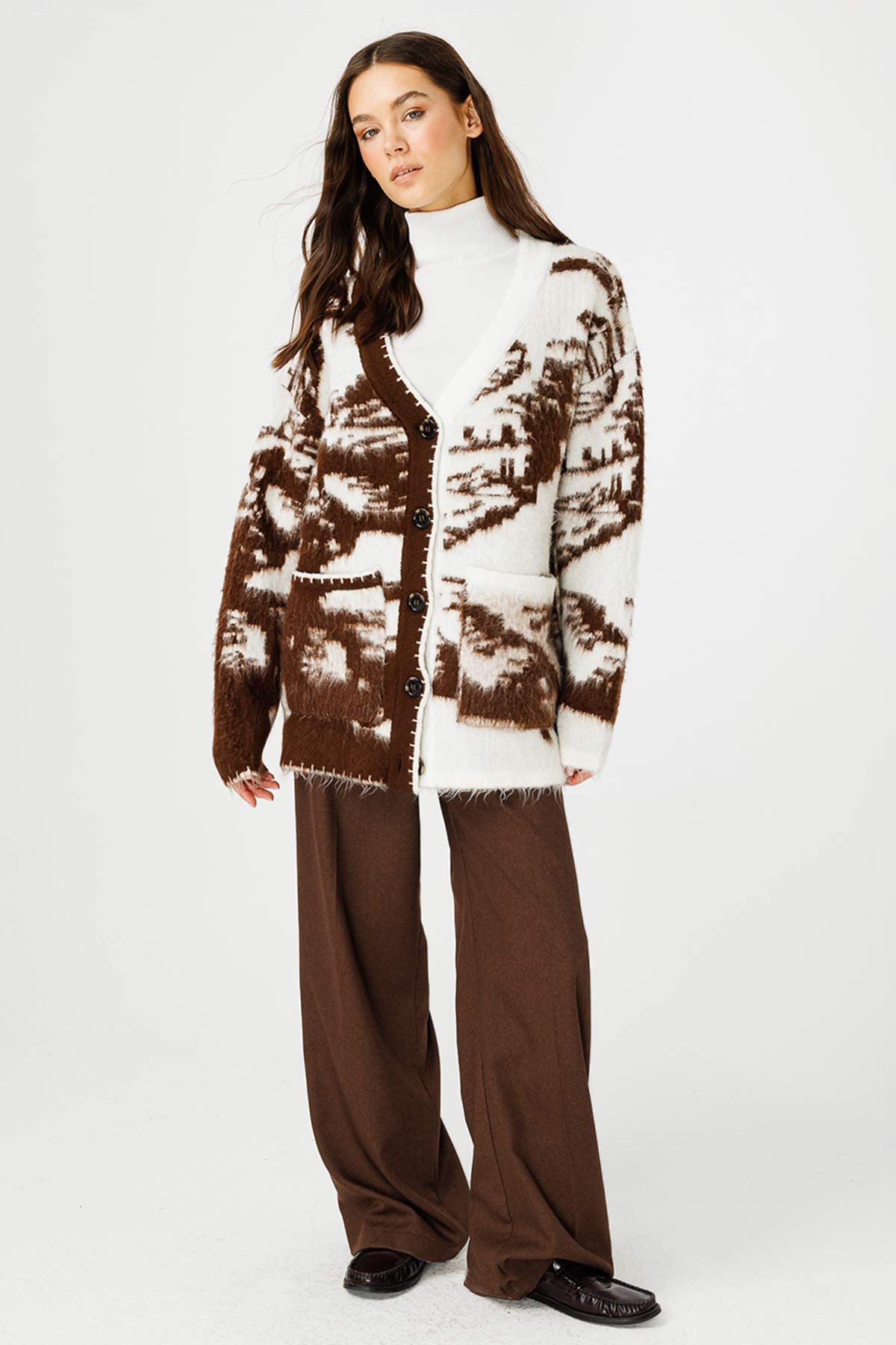 ميزات السترة المنقوشة: سترة منقوشة مصممة من خيوط بارزة خاصة، رقبة على شكل حرف V، تفاصيل خياطة، أزرار أمامية، سترة فضفاضة. 80% أكريليك، 13% بيس، 7% إيليت، يُغسل يدويًا ويوضع ليجف. تخزينها في طبقات.