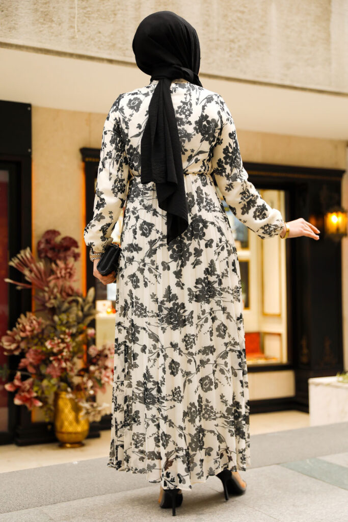 فستان حجاب إكرو منقوش بالزهور 50352e