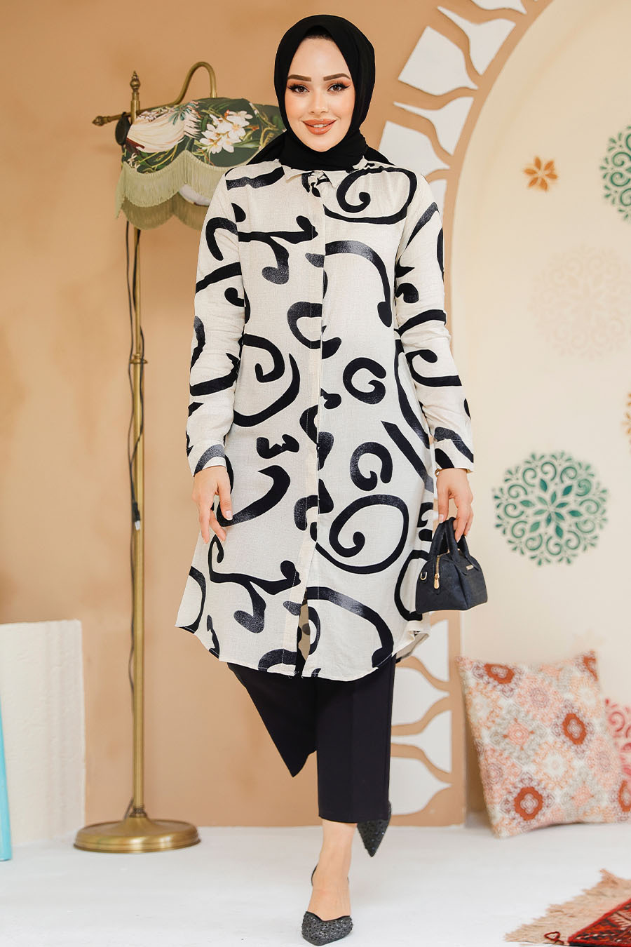 مميزات القماش: مصنوع من نسيج قطني بنسبة 100%. مميزات المنتج: ياقة كلاسيكية، وأكمام طويلة، وأساور أكمام، منقوشة وأزرار في المنتصف من الأمام. طول المنتج: 100 سم. لون المنتج: أسود – قد يكون هناك اختلاف في لون المنتج بسبب تصوير نمط الحياة. محتوى الطلب: هذا المنتج ليس مزيجًا. يباع فقط على شكل تونيك مقاس العينة: 38 الغسيل: يمكن غسله على درجة حرارة 30 درجة دون عصر قياسات الموديل الارتفاع: 165 سم الخصر: 67 سم الأرداف: 98 سم الصدر: 85 سم الوزن: 57.