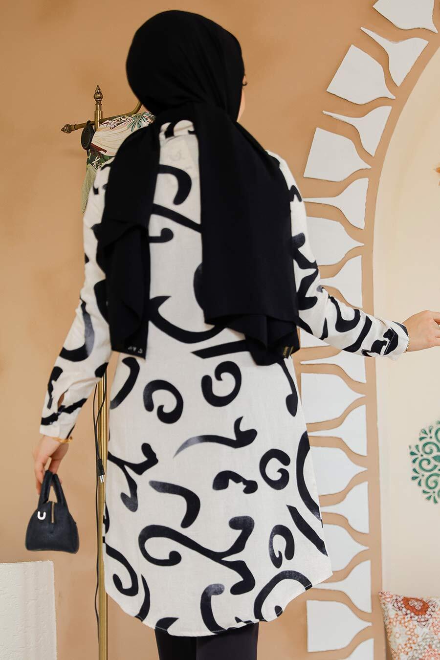 نيفا ستايل – فستان حجاب أبيض منقوش 77301b