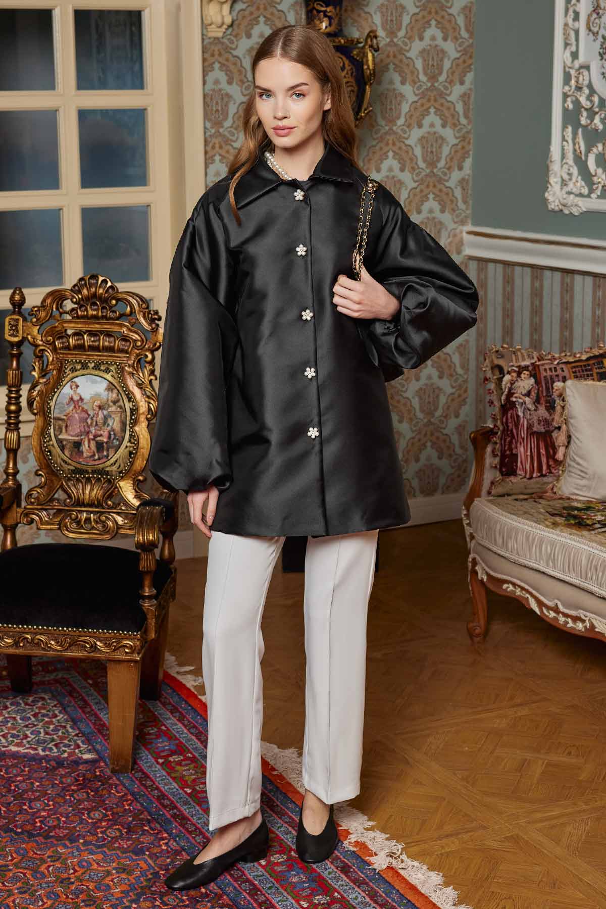 مميزات التونيك المطرز ذو الأكمام البالونية: أكمام راجلان، أزرار ملحقة خاصة في الأمام، أكمام منفوخة، حزام متحرك، قفطان مصمم من نسيج بوليستر مبطن بنسبة 100%.