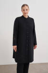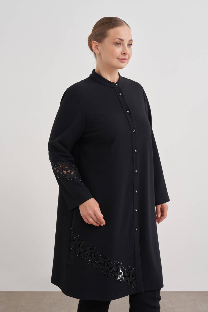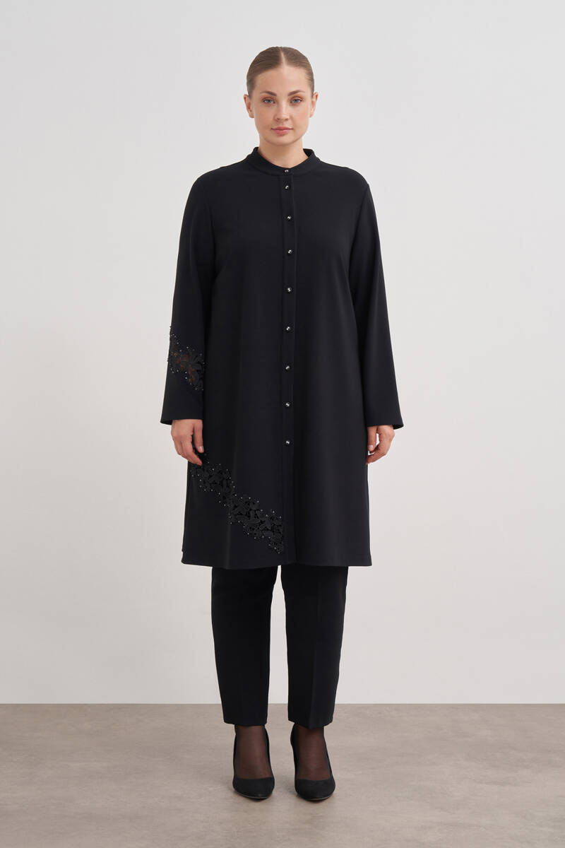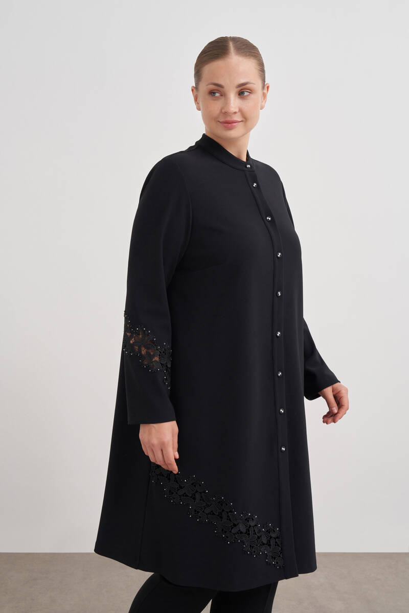 فستان سهرة حجاب – فستان سهرة حجاب ستان أسود مع تفاصيل خرز 25894s