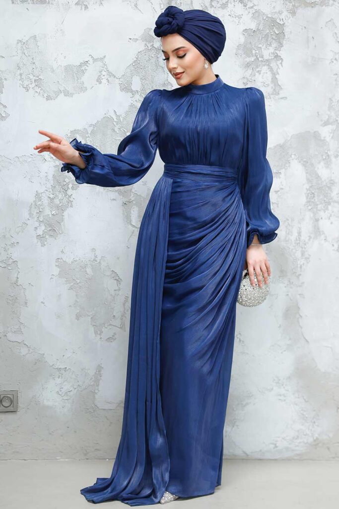 فستان سهرة حجاب – فستان سهرة حجاب أزرق كحلي 4934l