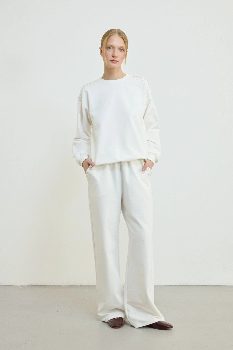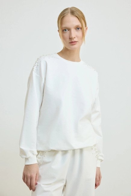سويت شيرت قطني مزين باللؤلؤ – إكرو