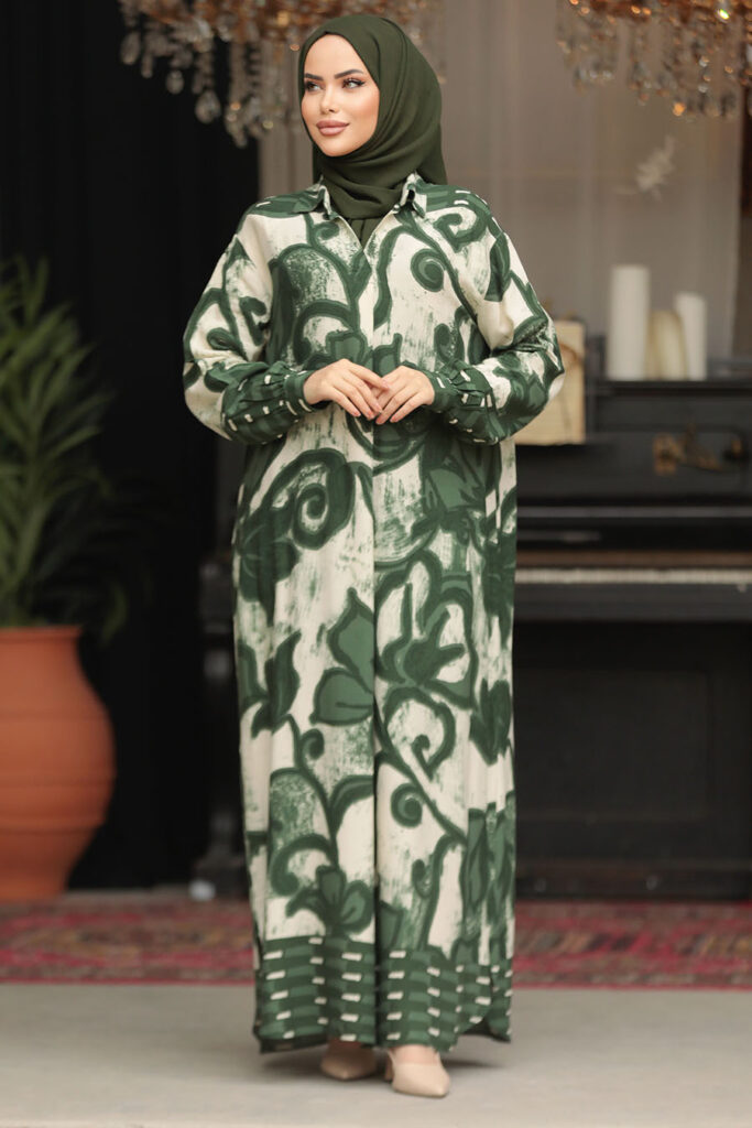 فستان حجاب أخضر منقوش بالزهور 23171y