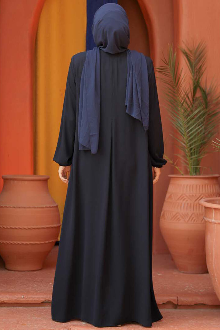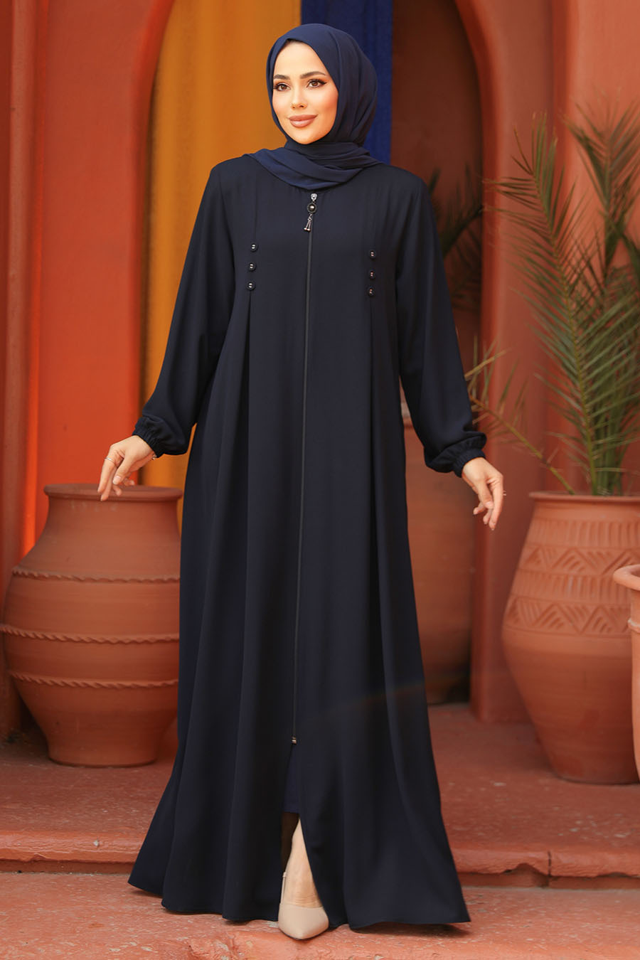 عباية حجاب باللون الأزرق الداكن بسحاب 45282l